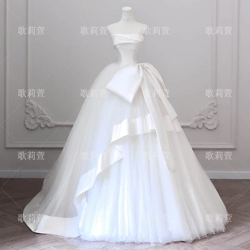 Satin light wedding dress 2022 new bride French - style master yarn small high - texture retro - tail winter