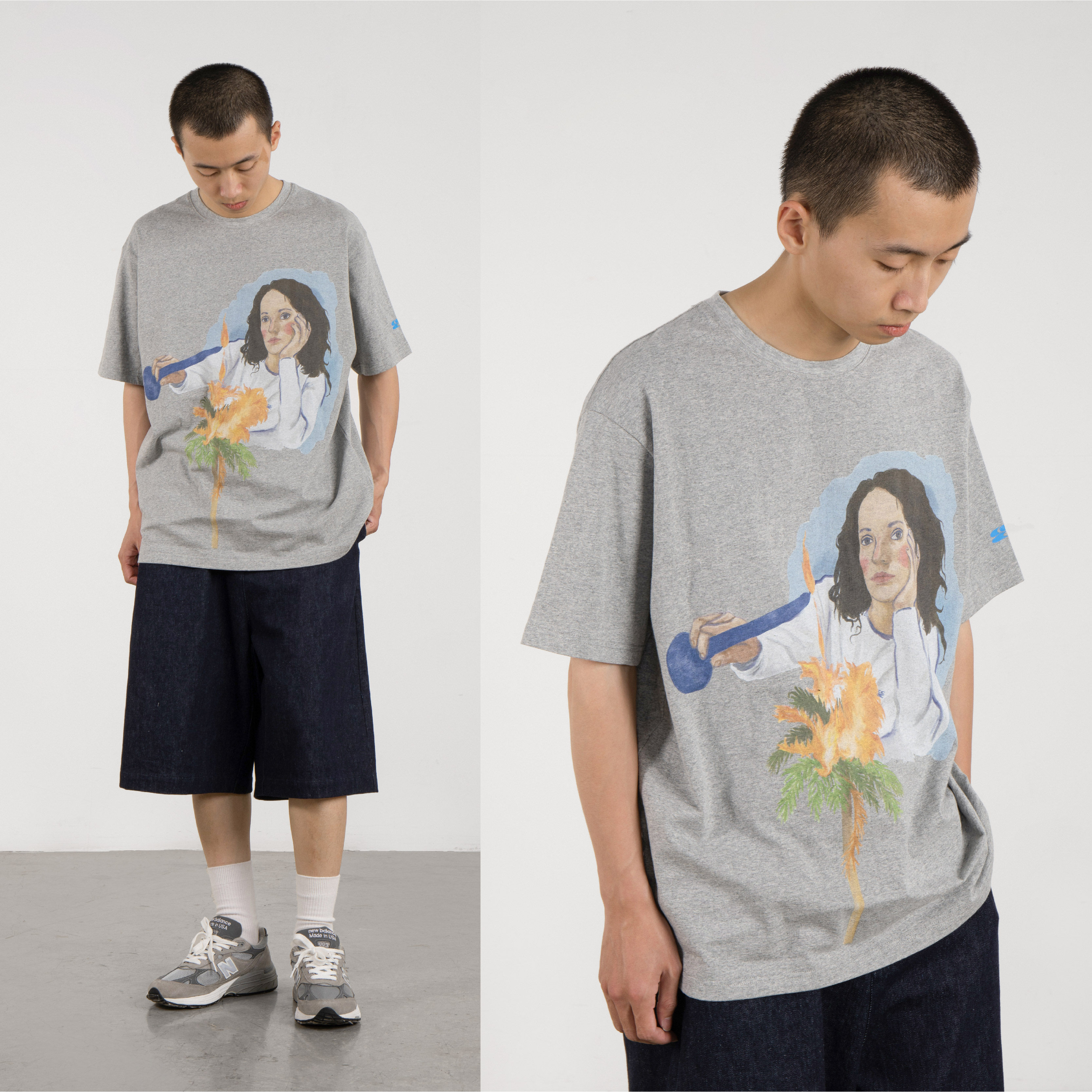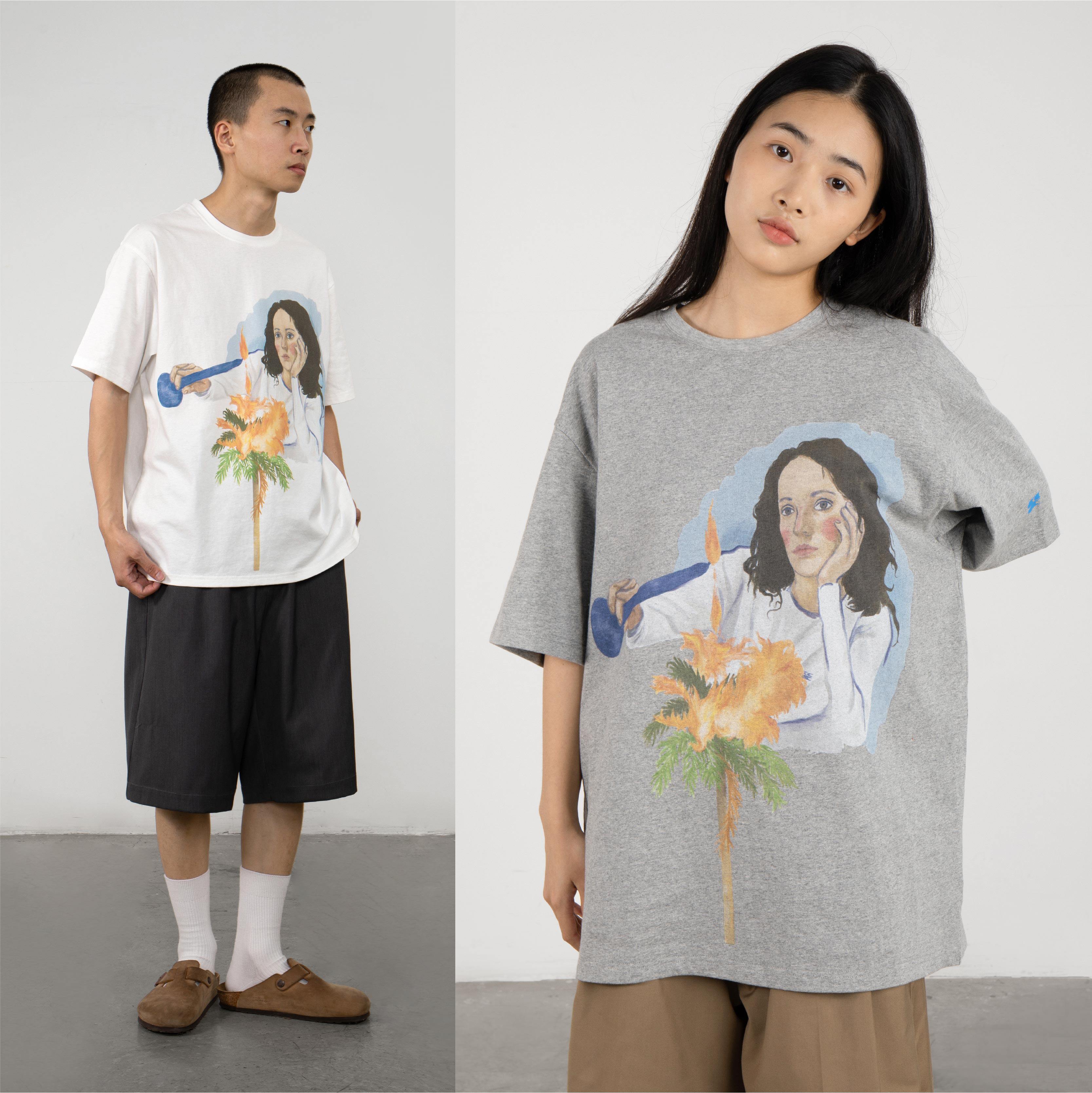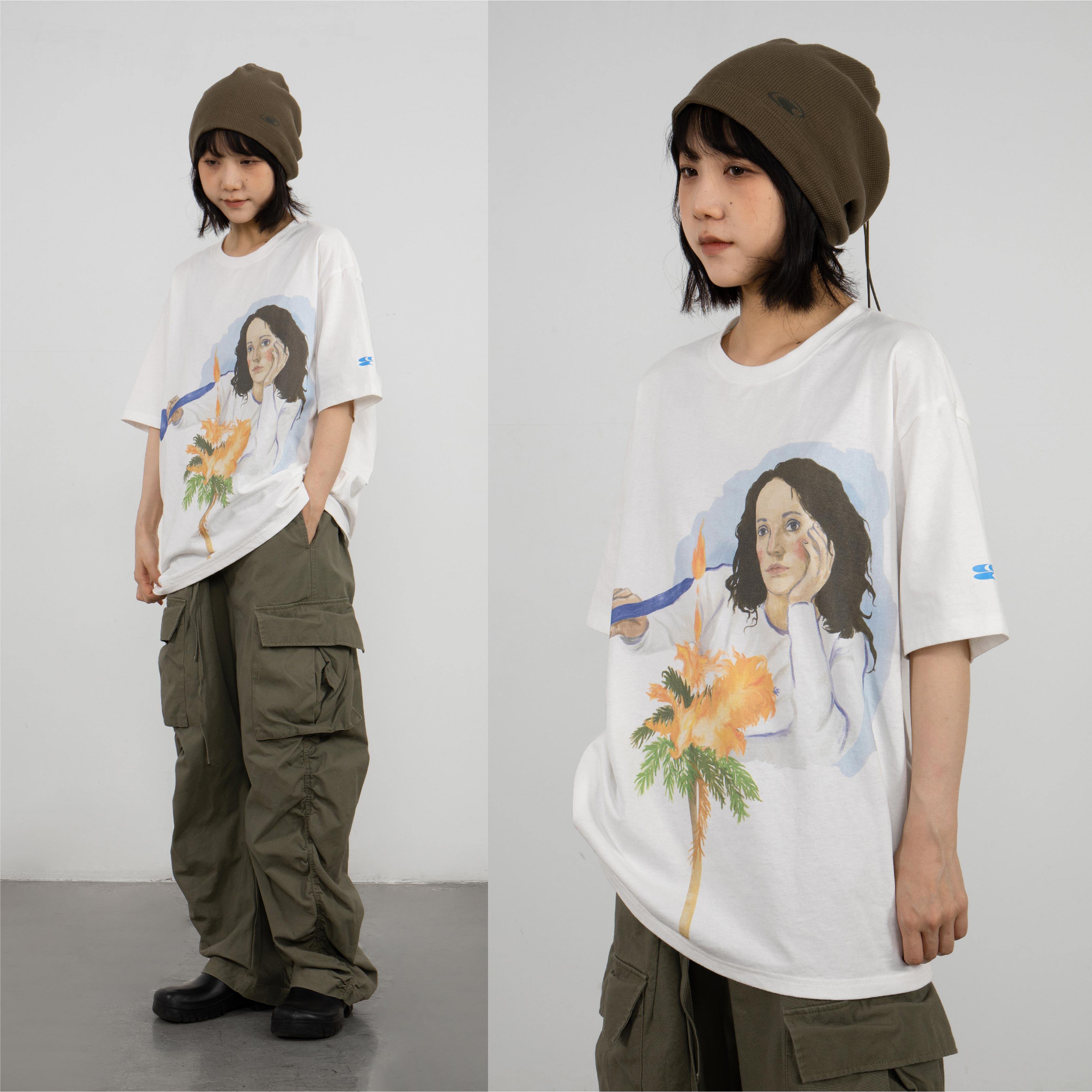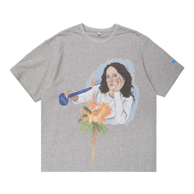 Crying Center sad when lighting a candle tugging the oil painting tee, blossom gray and expansive version of the plate