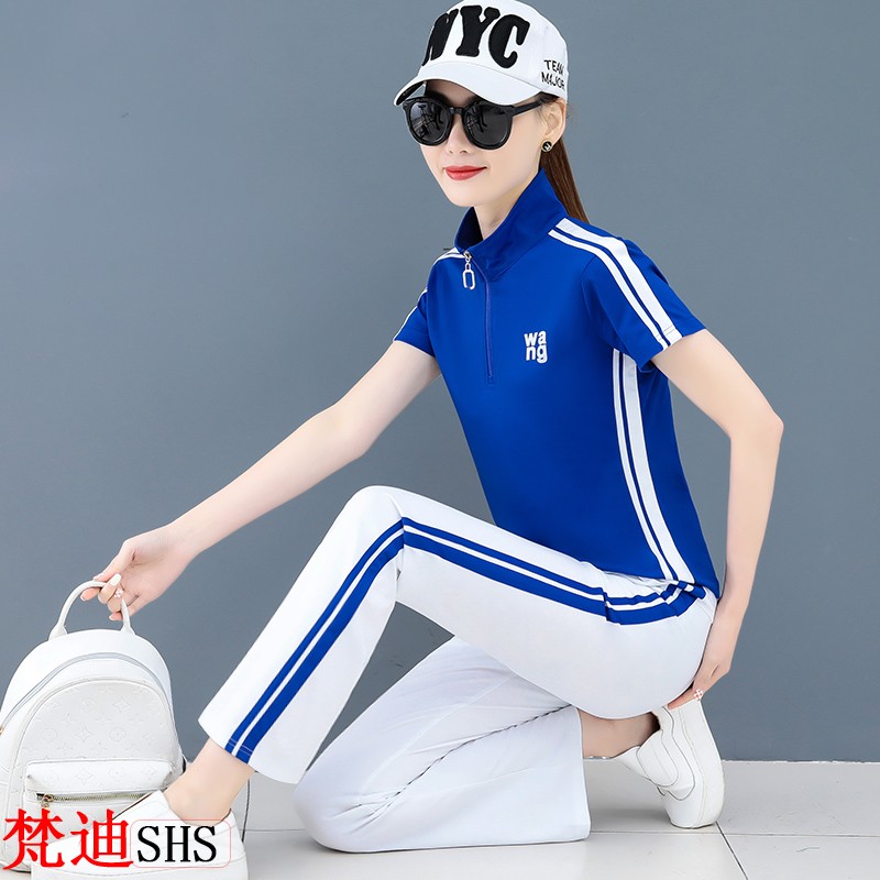 Ice silk quick-drying sports suit women's summer 2022 new morning running thin section short-sleeved running sportswear two-piece tide