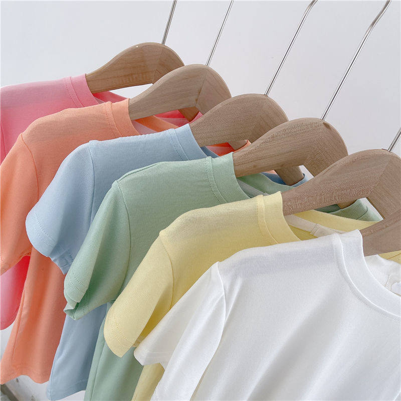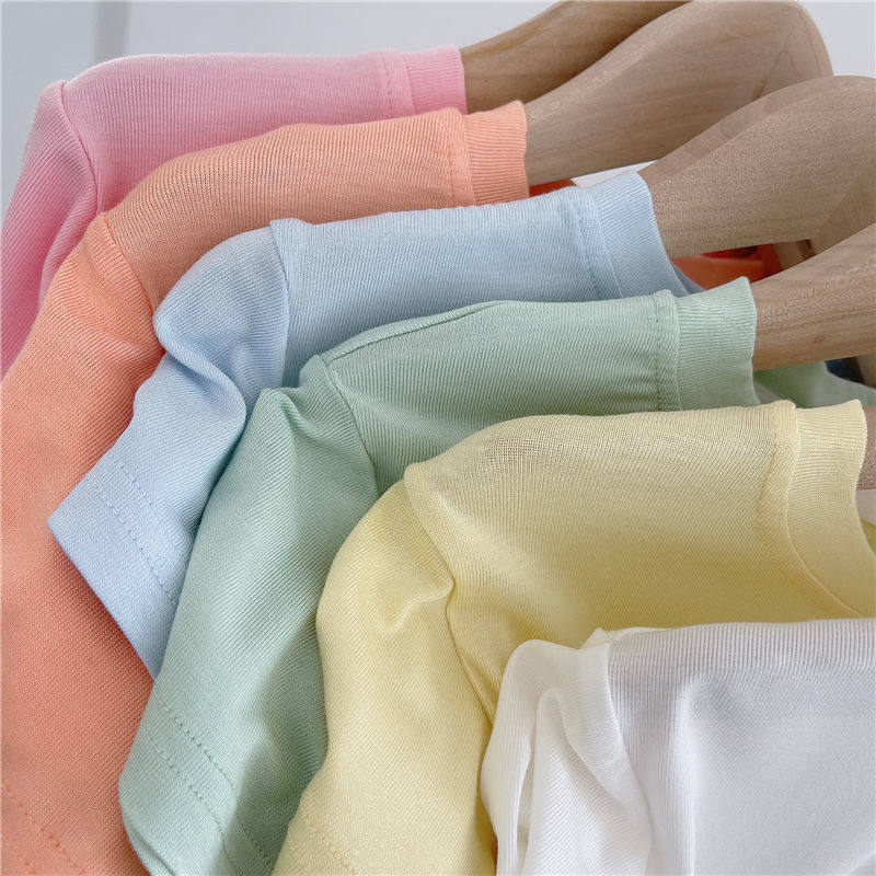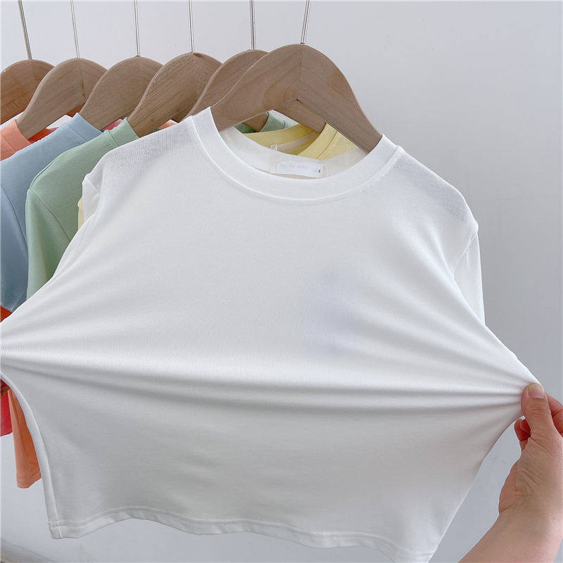 Children's mask T-shirt solid color round neck short-sleeved summer thin section loose boys and girls bottoming shirt baby modal top