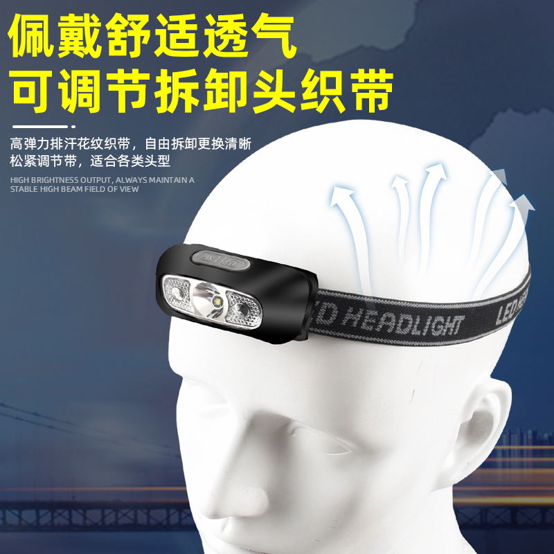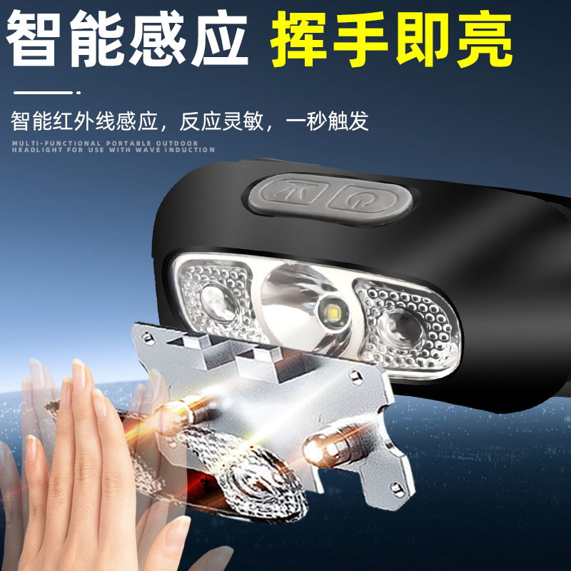 Induction headlight strong light rechargeable super bright light portable night fishing fishing light multi-functional outdoor household multi-purpose