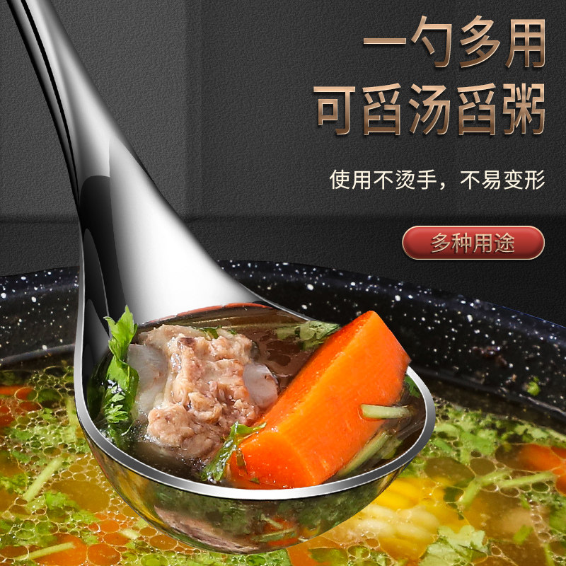 One-piece 304 stainless steel soup spoon deepening spoon household large long handle soup drinking soup porridge spoon porridge spoon