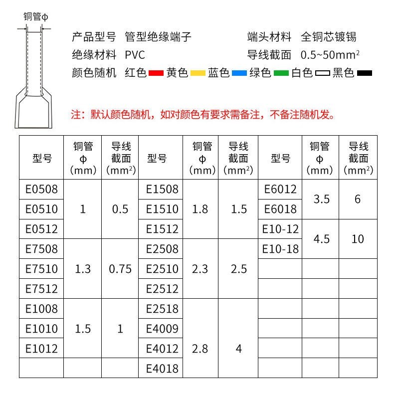 VE type multi - color box VE0508 E7508 E1008 tube type cold - pressed terminal needle - type copper wire