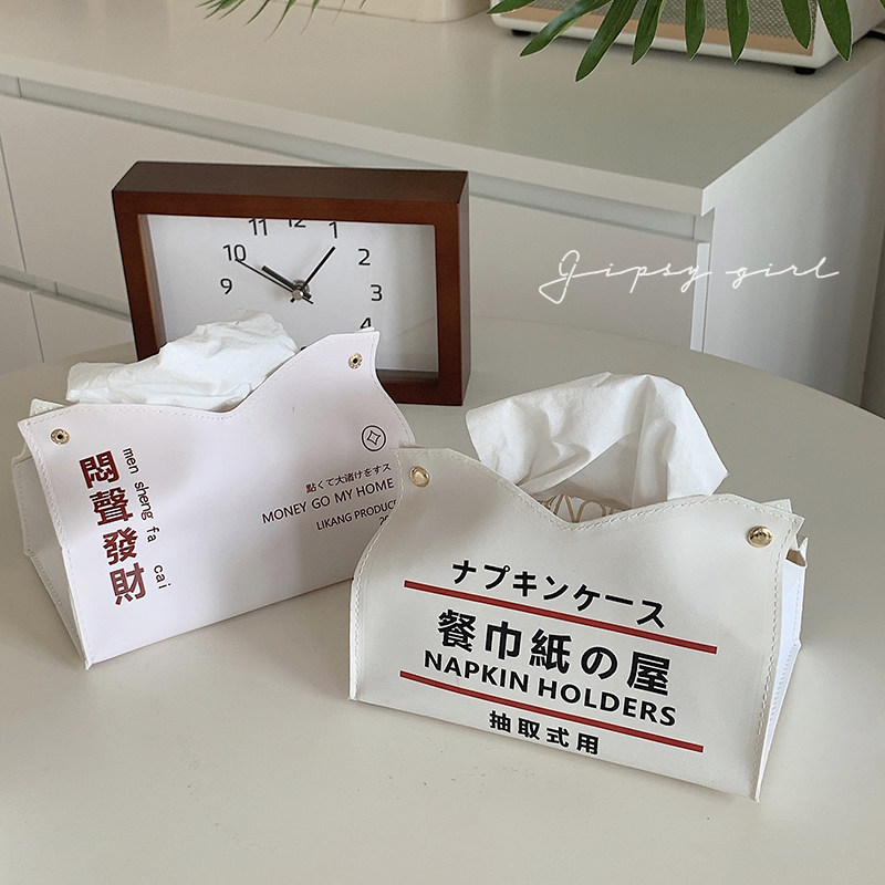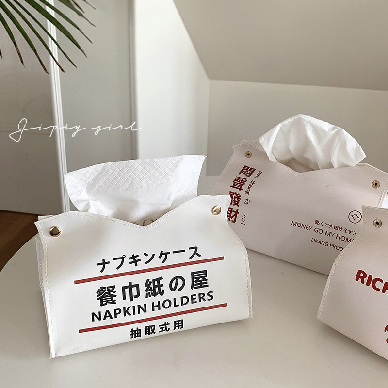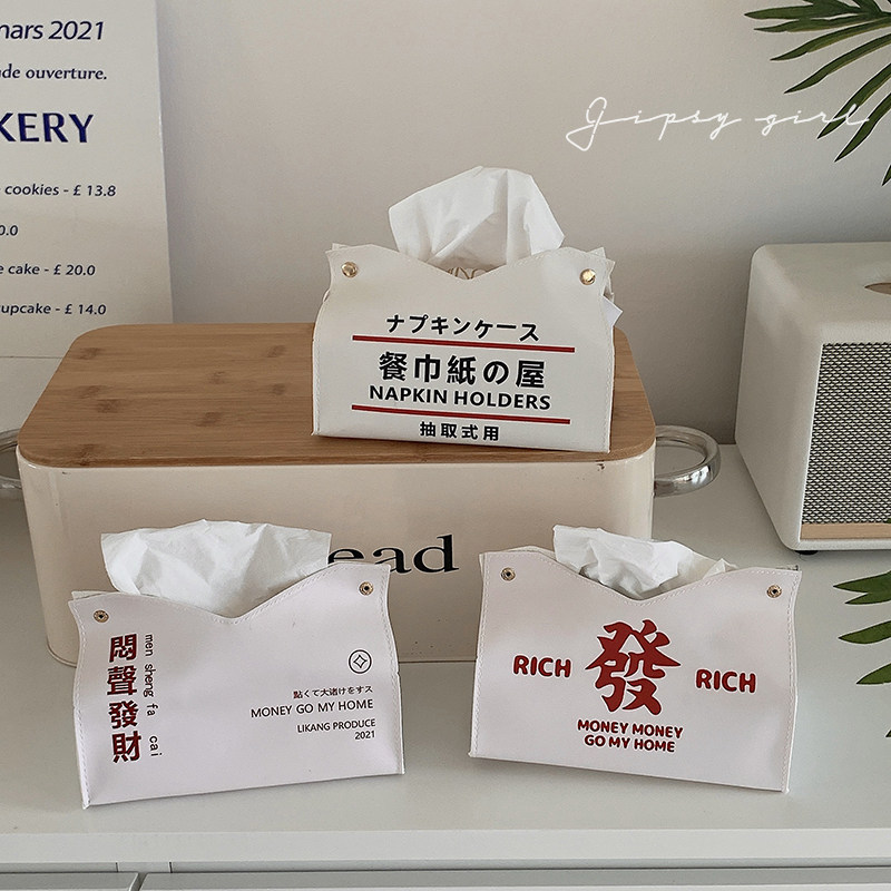 Stunner Girl Creative Household Tissue Set Get Rich Text Leather Tissue Box Desktop Home Decoration Tissue Box
