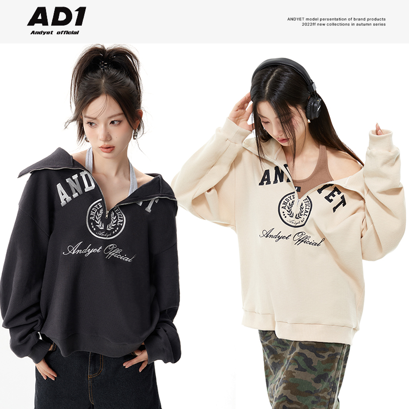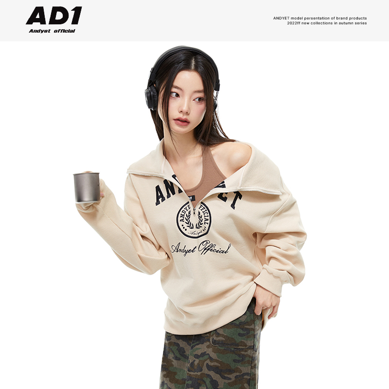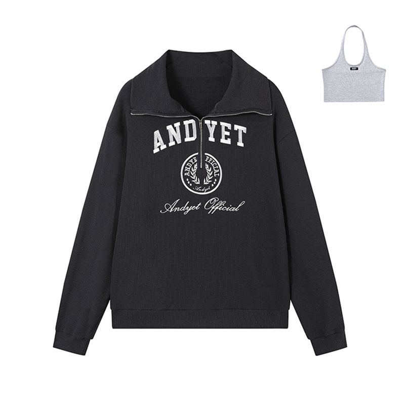 ANDYET AD1 (the same style as He Lingchen) waffle half zipper pullover sweater hanging neck suspenders two-piece set for women