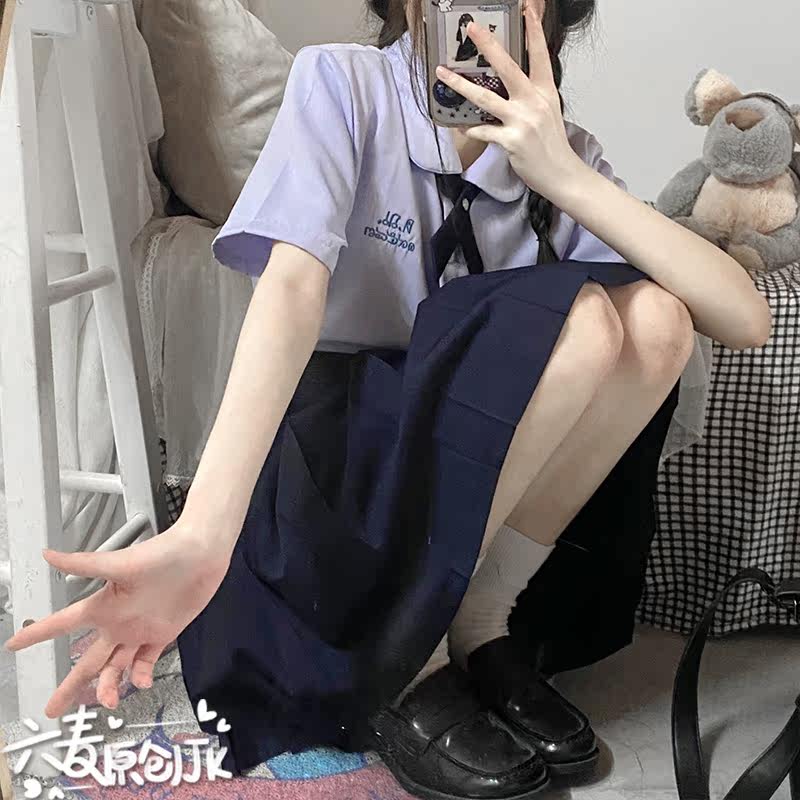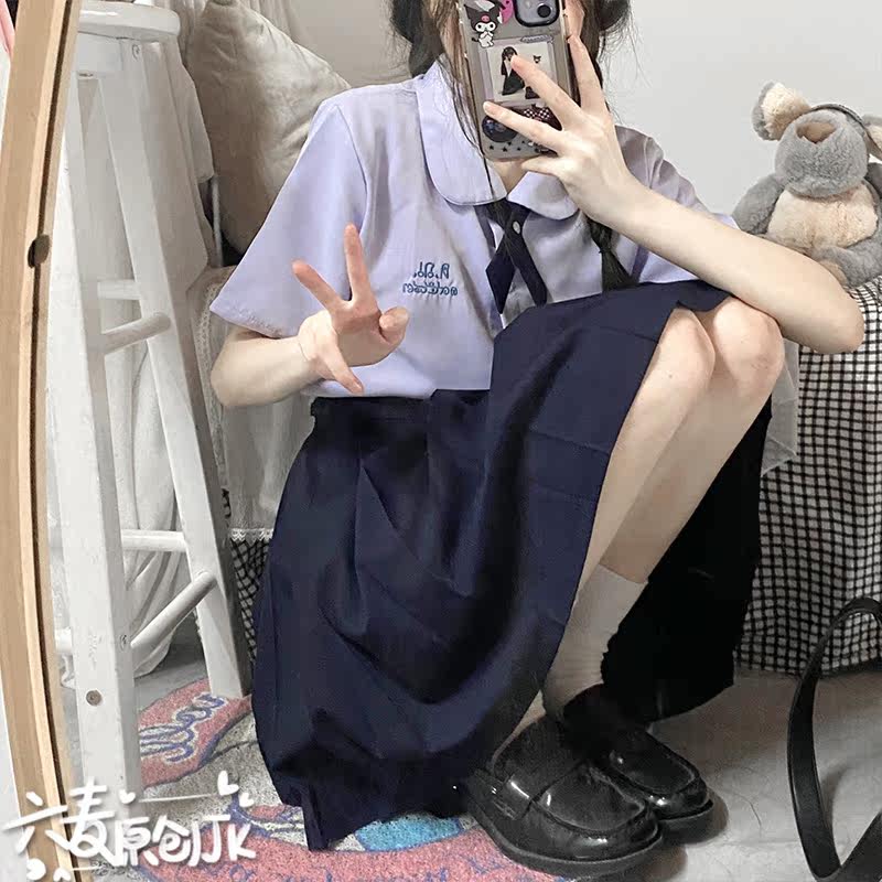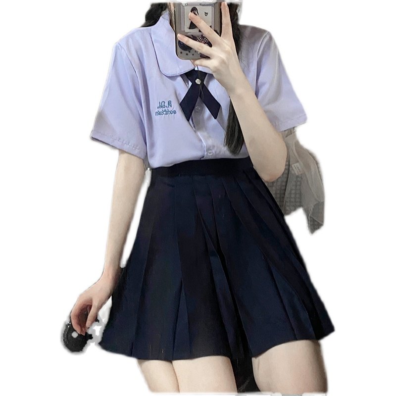 College style Thai school uniform JK lavender short-sleeved student shirt first love all-match round neck doll collar top girl