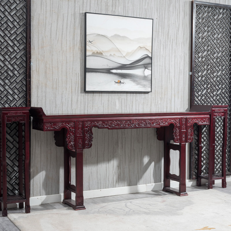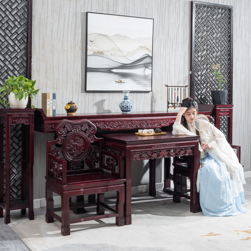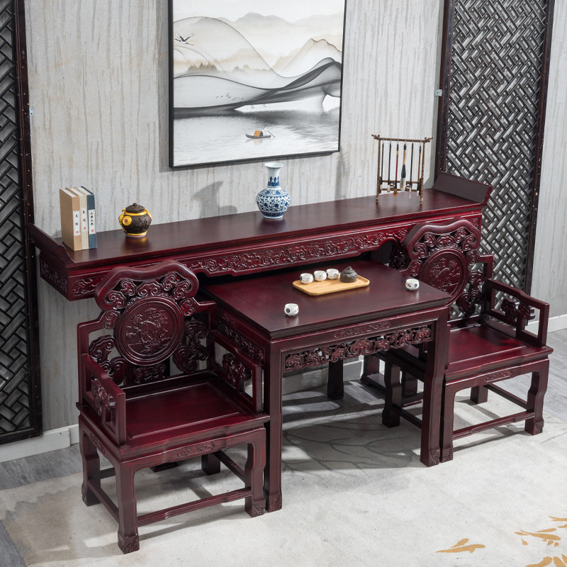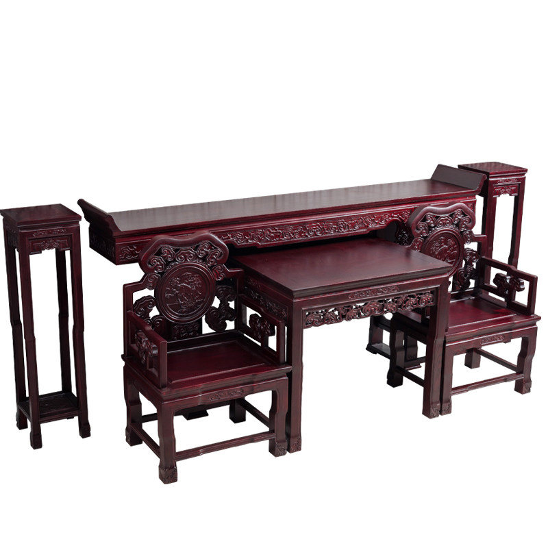 Chinese style solid wood middle hall six-piece set home Taishi chair eight immortals table four-piece set rural Buddhist hall table antique case