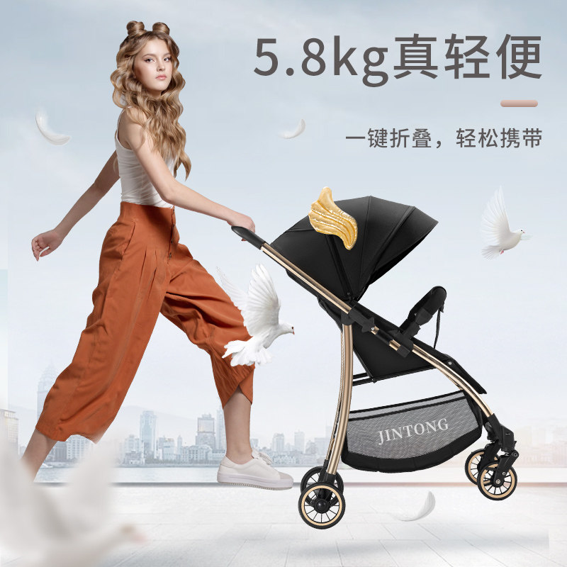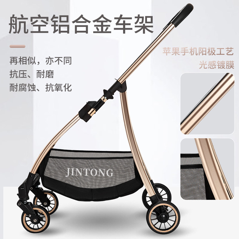 Stroller light one-button folding two-way can sit and lie high landscape baby stroller shock-absorbing aluminum alloy BB car