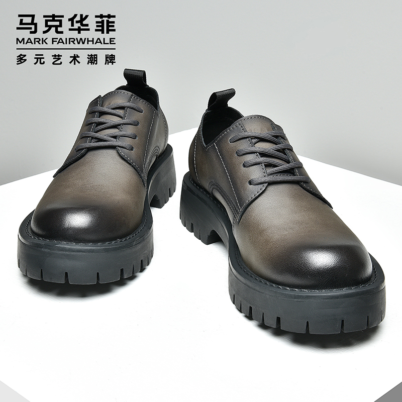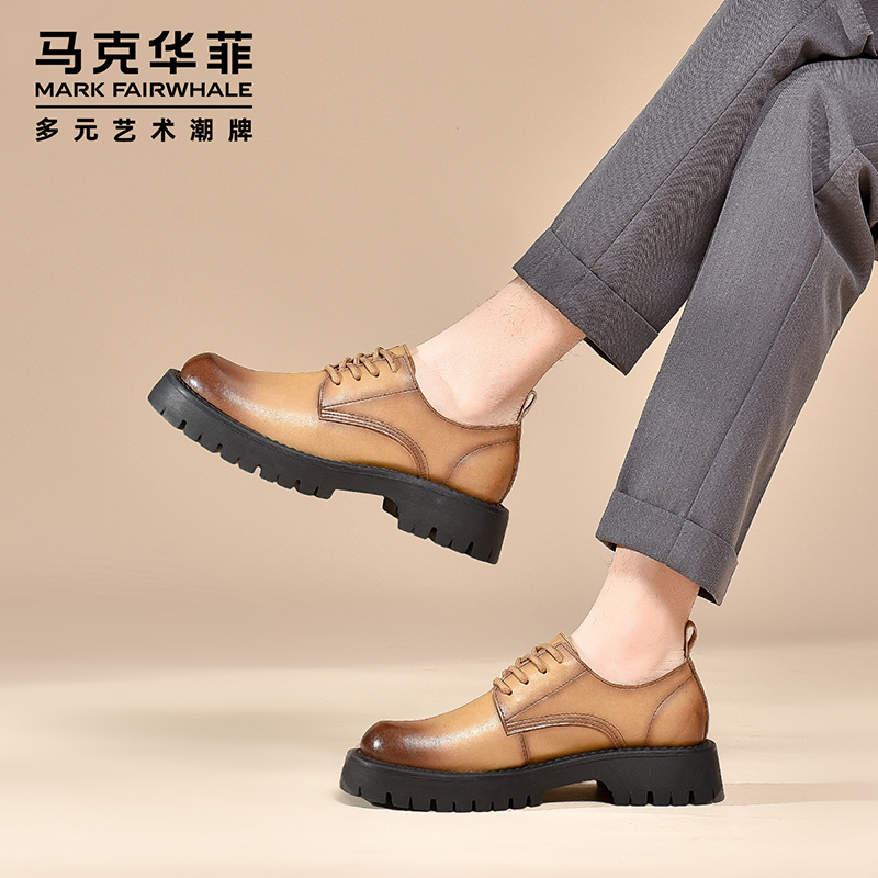 Mark Faye Brown Leather Shoes Men's Heightening Tooling Shoes Men's Boots British Style Leather Men's Shoes Summer Casual Thin Section