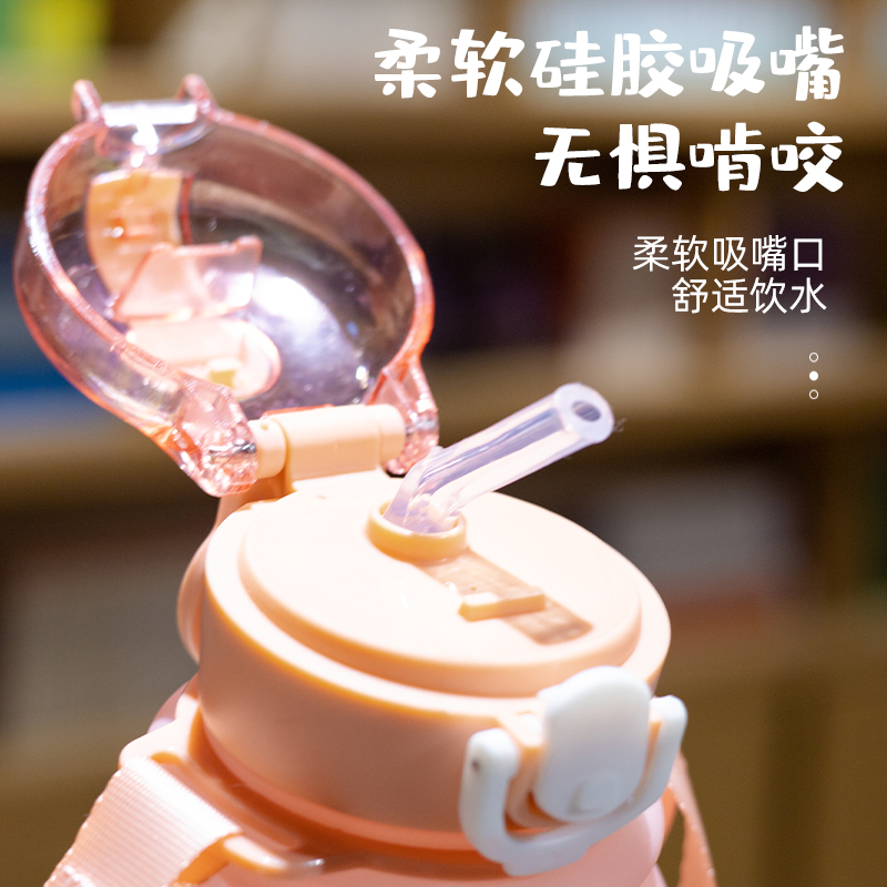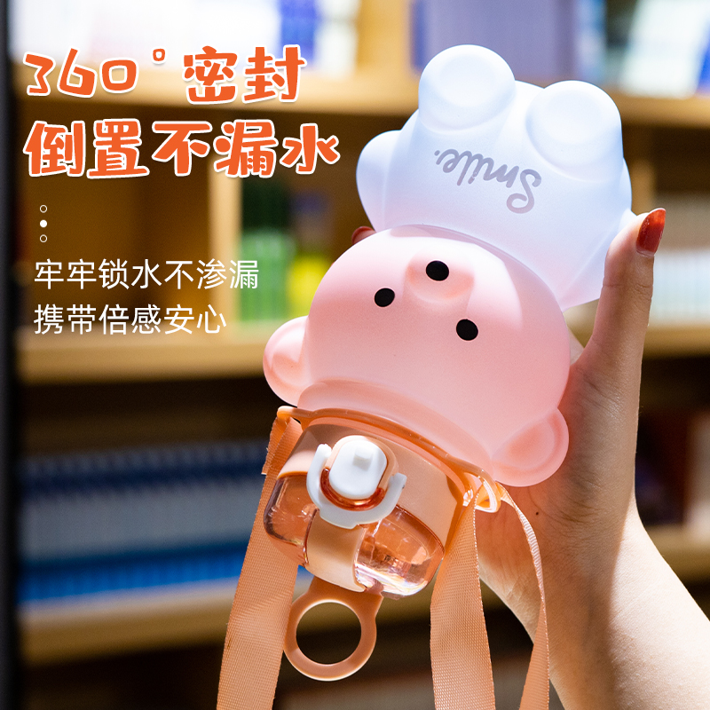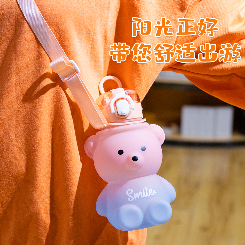 Summer cute bear drinking cup with straw plastic cup high temperature resistant female student cute child resistant to falling and portable