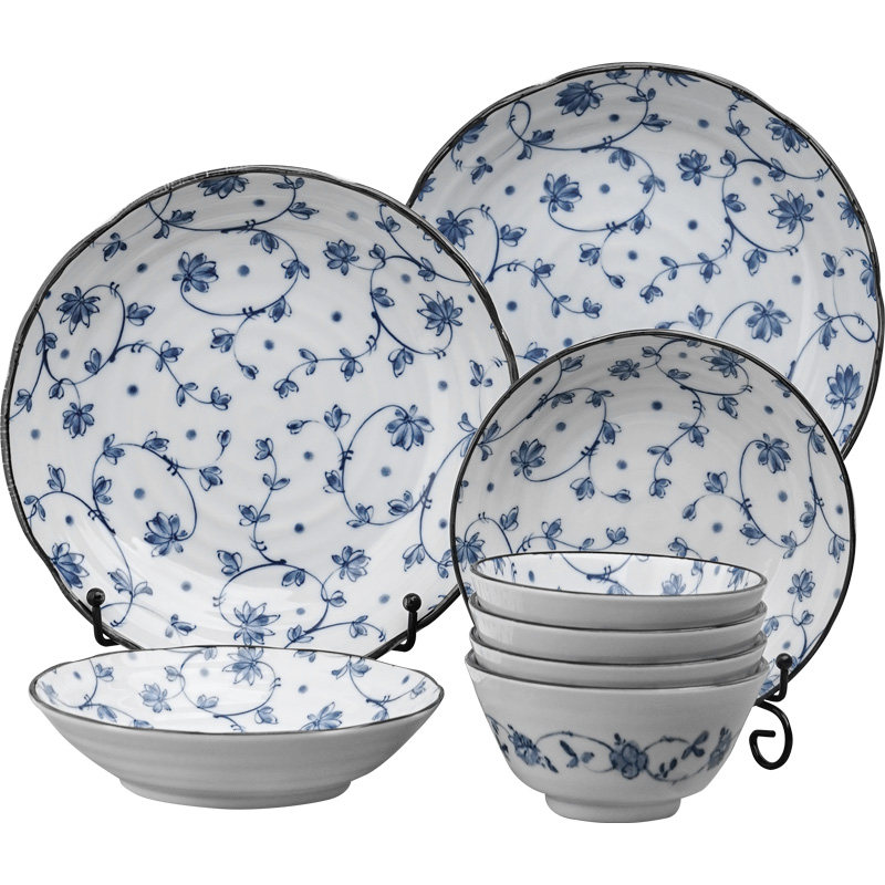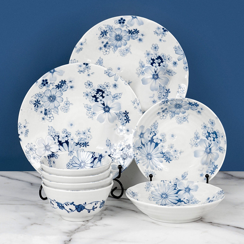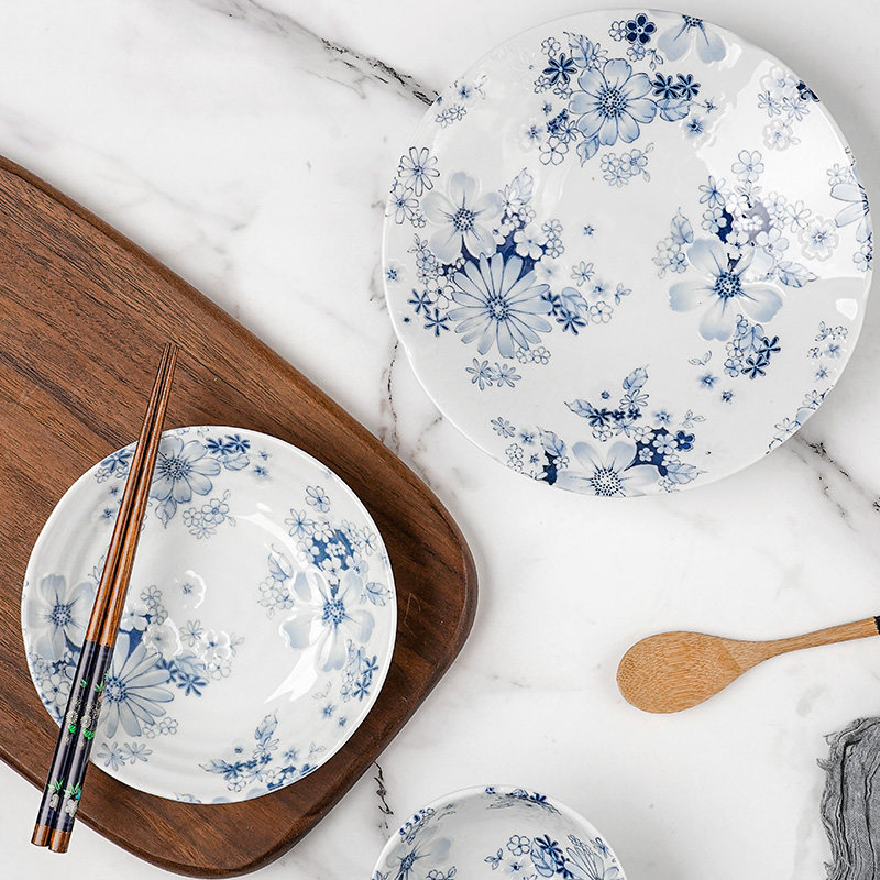 Japanese ceramic tableware suit household blue flower simple dish dish combination of Japanese dishes