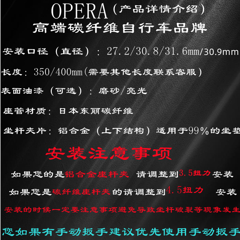 Opera full carbon fiber ultra-light mountain bike road bike bicycle accessories strengthen seat tube seat post seat tube