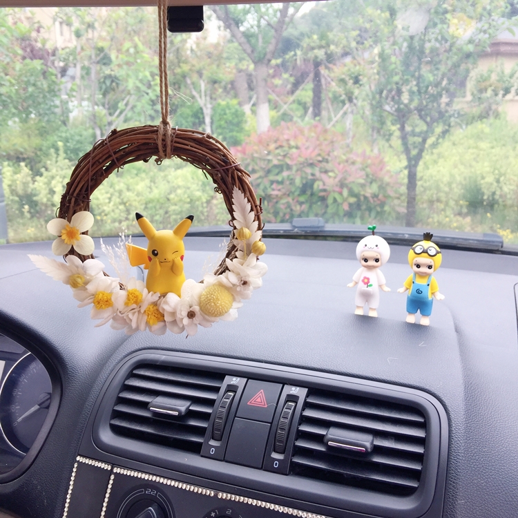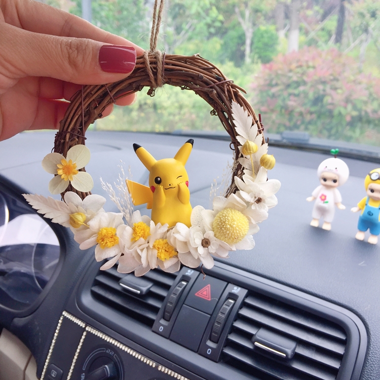 Eternal flower car wreath dried flower female car pendant eucalyptus rattan ring Pikachu car decoration car hanging gift hot sale