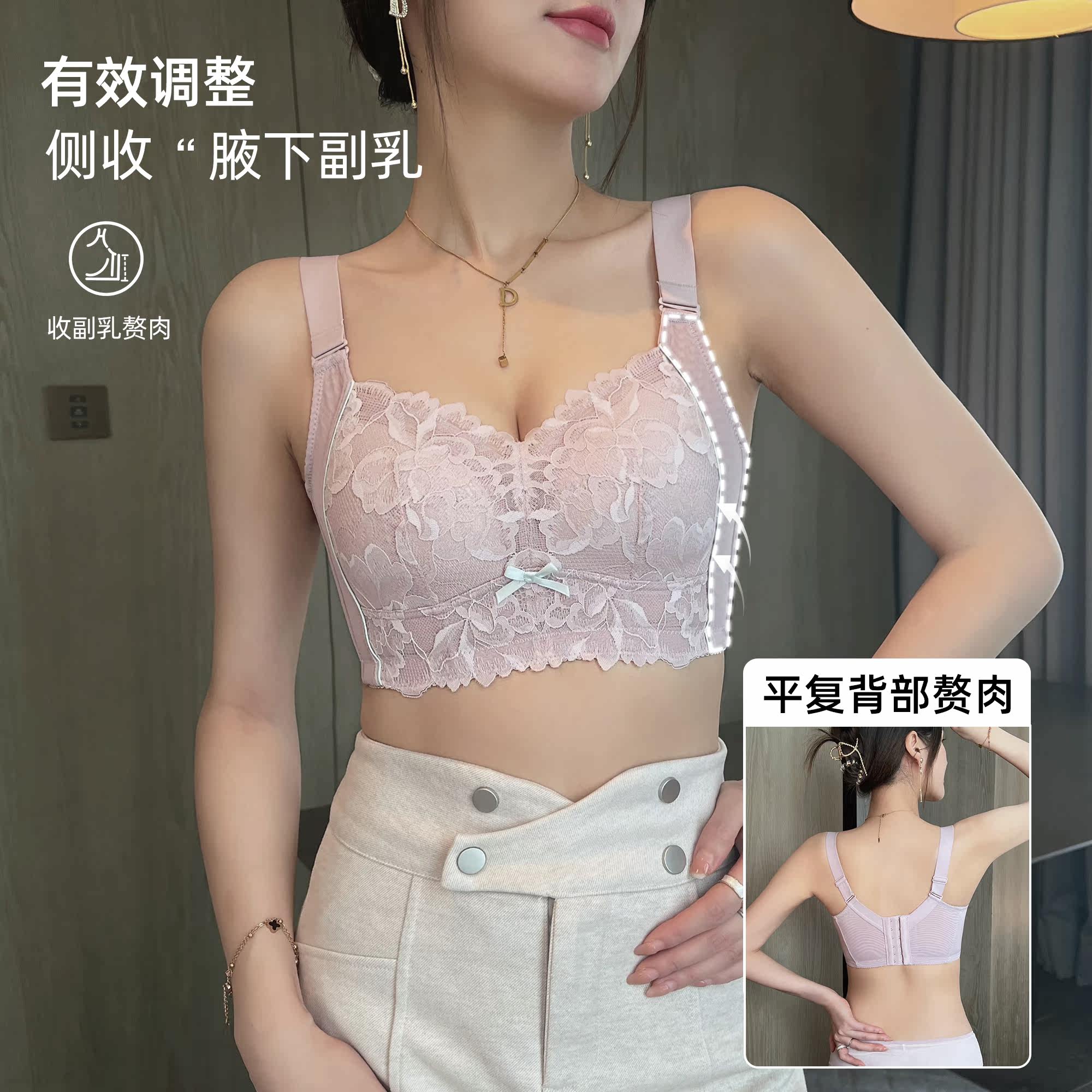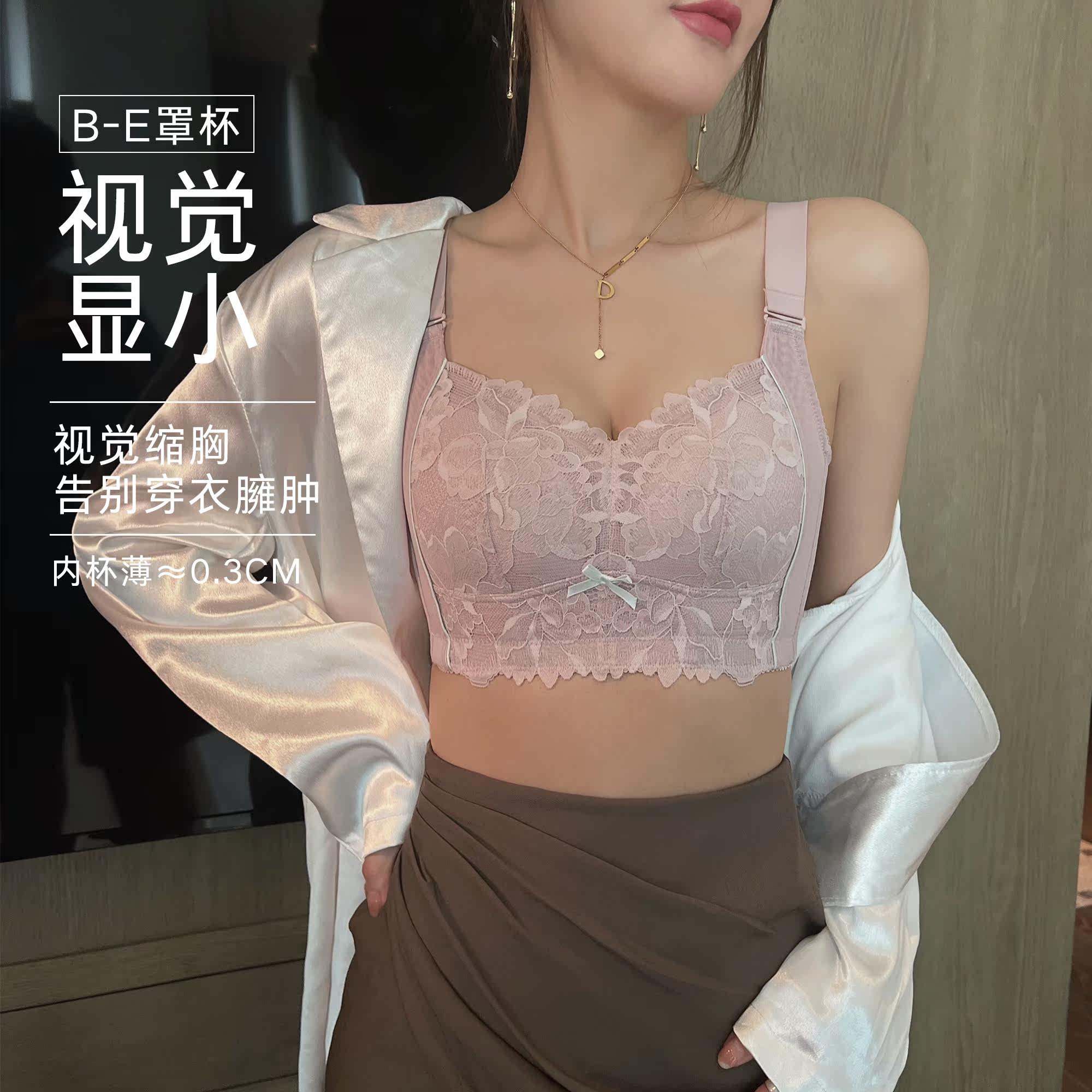 Oversized latex lingerie summer thin women's underwire-free big bra small bra retracted breast anti-sag bra set