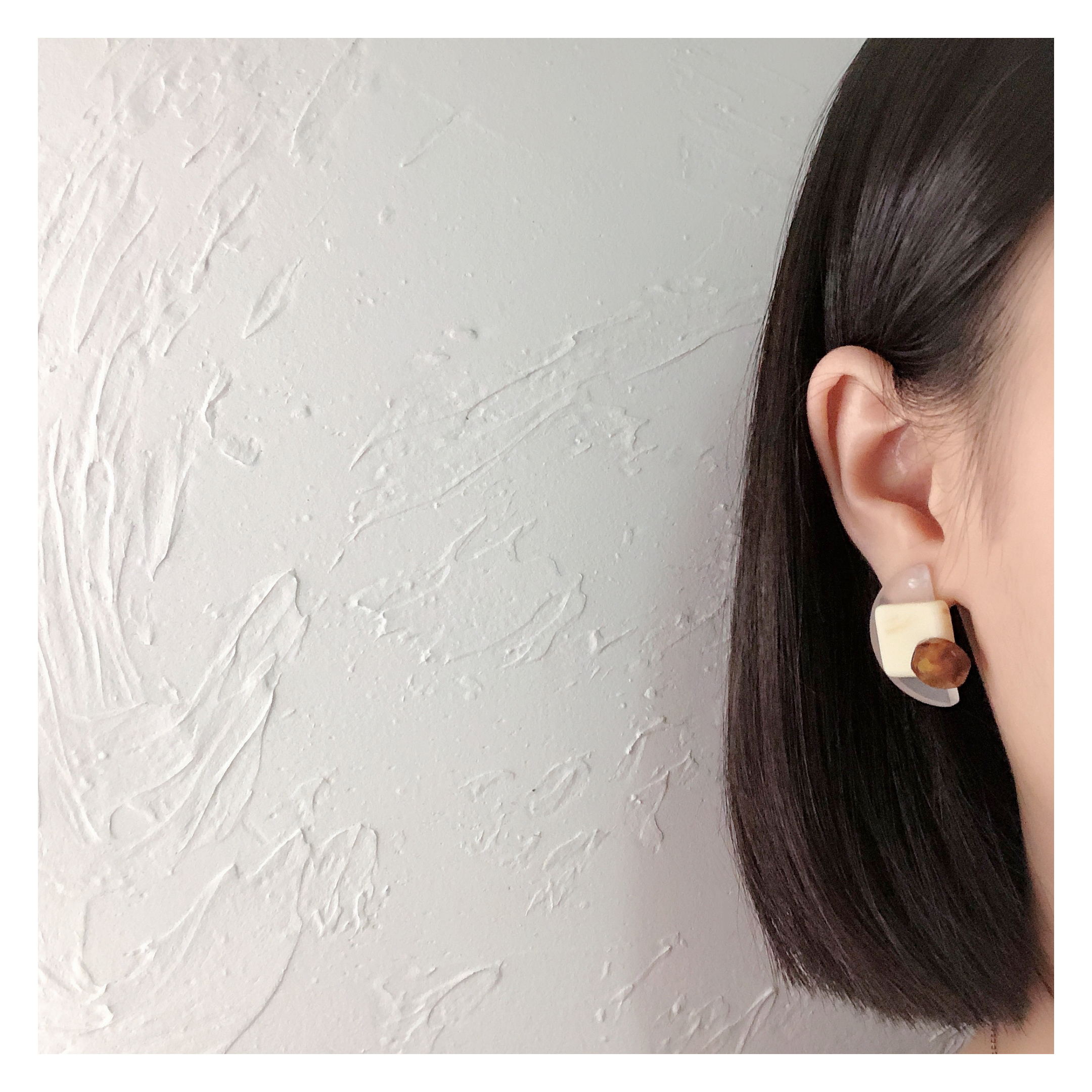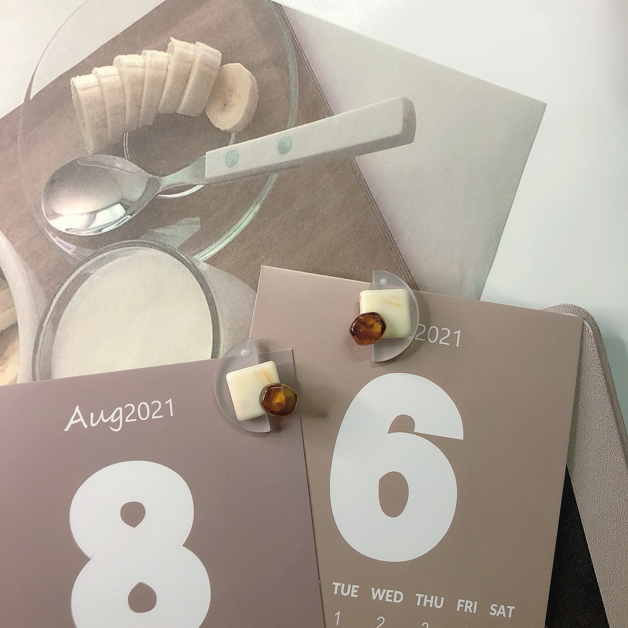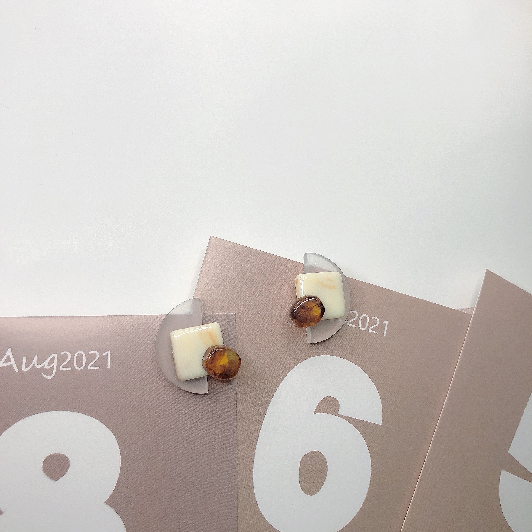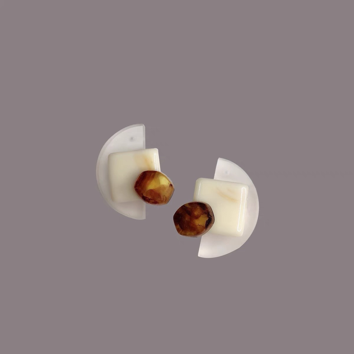 "Absurd World" geometric color contrast earrings cream amber salt girl s925 silver needle earrings