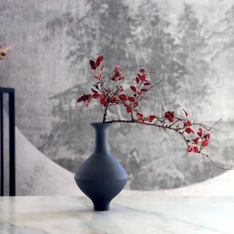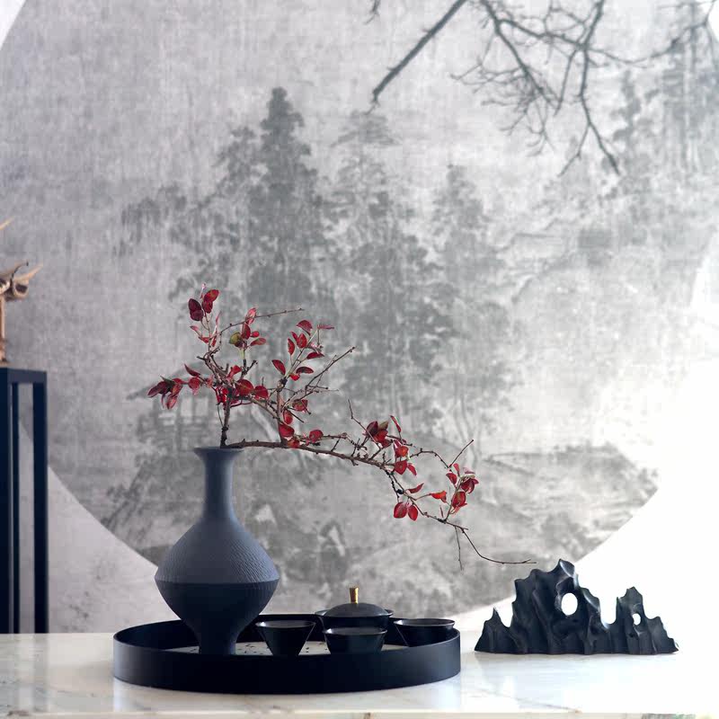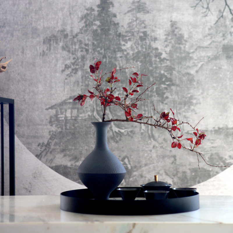 Modern neo-Chinese black pottery gyroscope vase tea set office living room decoration