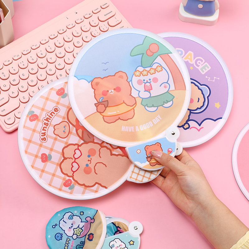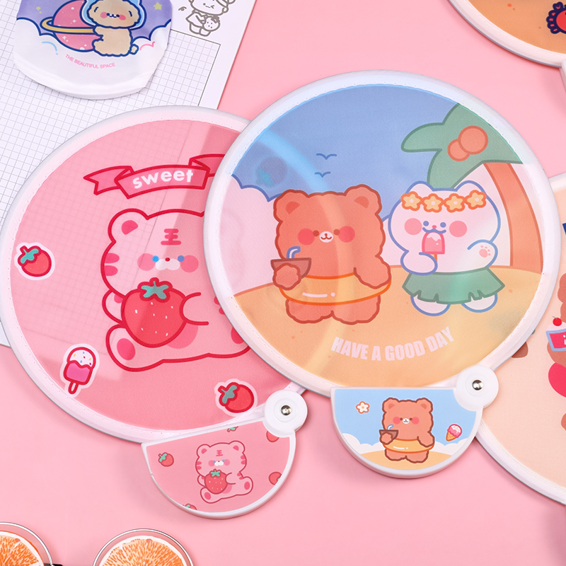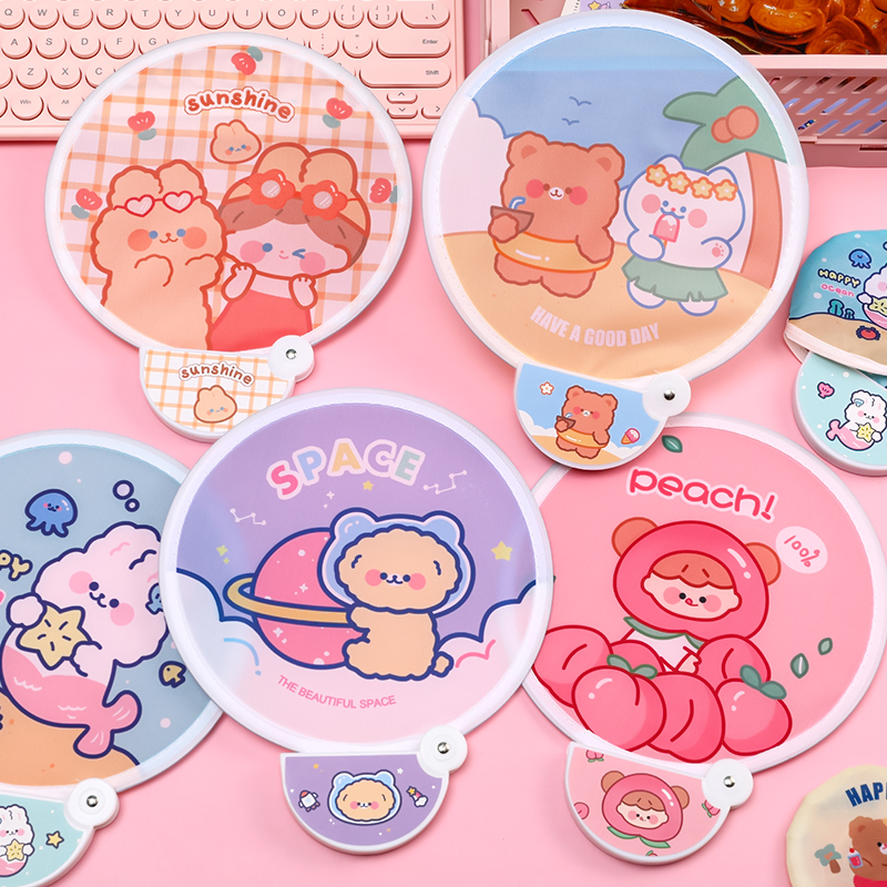 Japanese cartoon group fan folding fan cute mini small fan portable folding fan student round fan kindergarten small gift - Taobao
