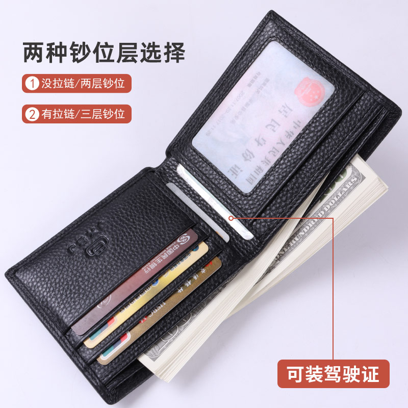 JXSJ men's leather wallet short full leather wallet top layer cowhide high-end brand business men's wallet