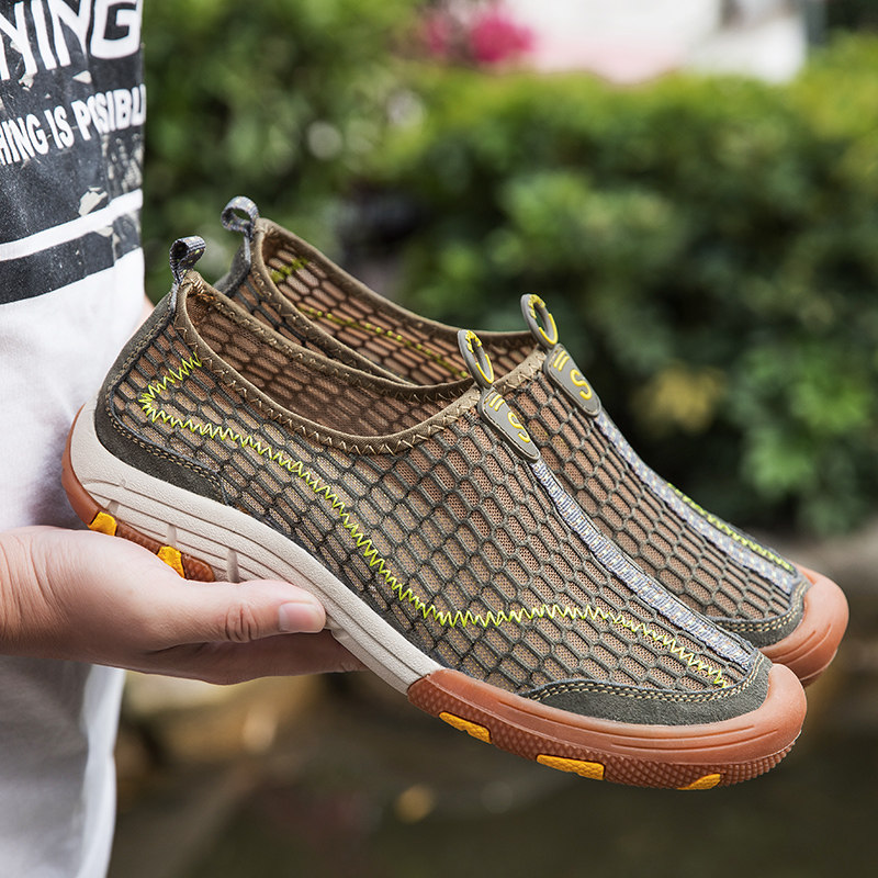 New single-net shoes male breathable shoes one foot outdoor sneakers summer male mesh lazy daddy shoes