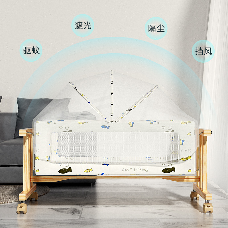 Paiyang Solid Wood Baby Solid Wood Bed BB Baby Bed Cradle Cradle for mosquito nets in parallel