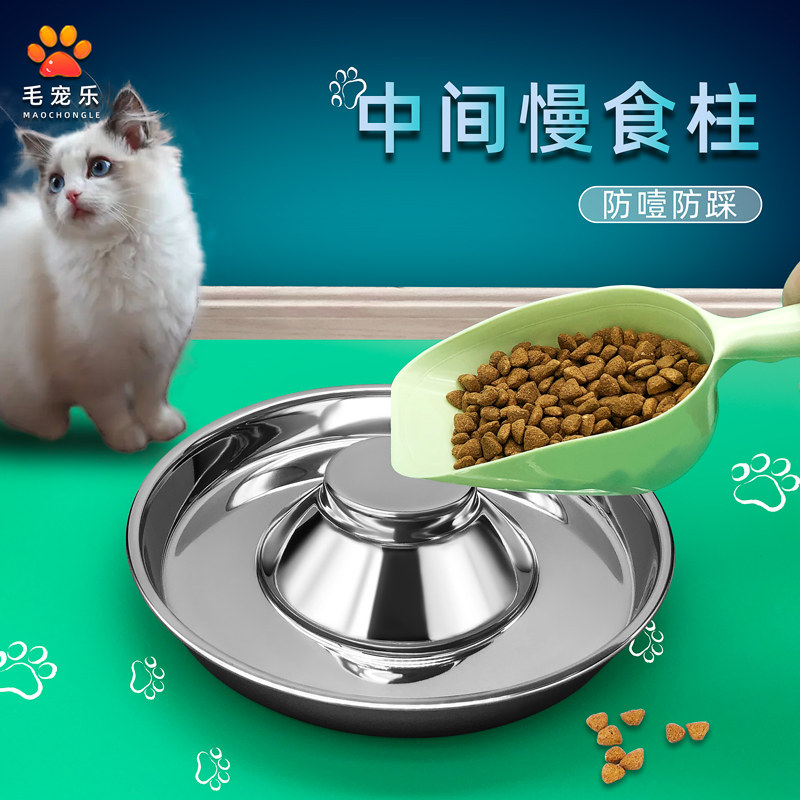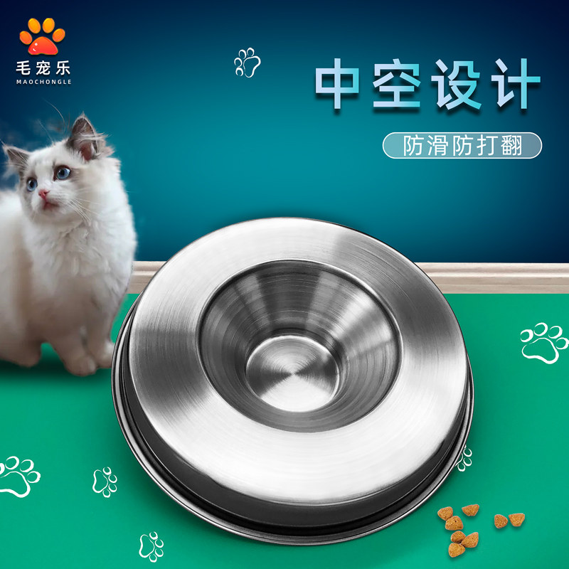 Stainless steel cat bowl petals multi-cat large dog slow food sub-food pot kitten soup plate anti-overturning pet bowl anti-stepping