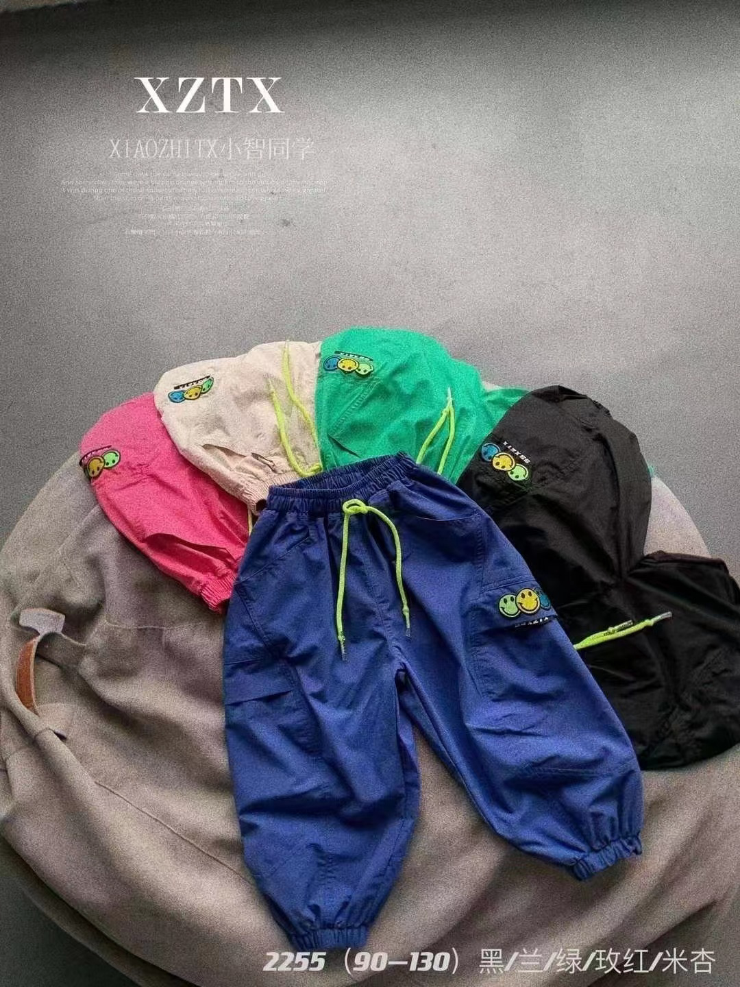 Small classmates and children in the spring and summer of 2022 thin section breathable smiling face loose casual trousers 2255