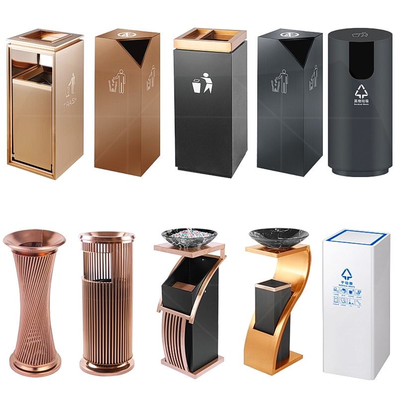 Dark blue D7 black trash can Maroon D7 rose gold trash can Peacock blue D7 all black trash can Lemon yellow D7 black side throw Khaki D7 rose gold side throw