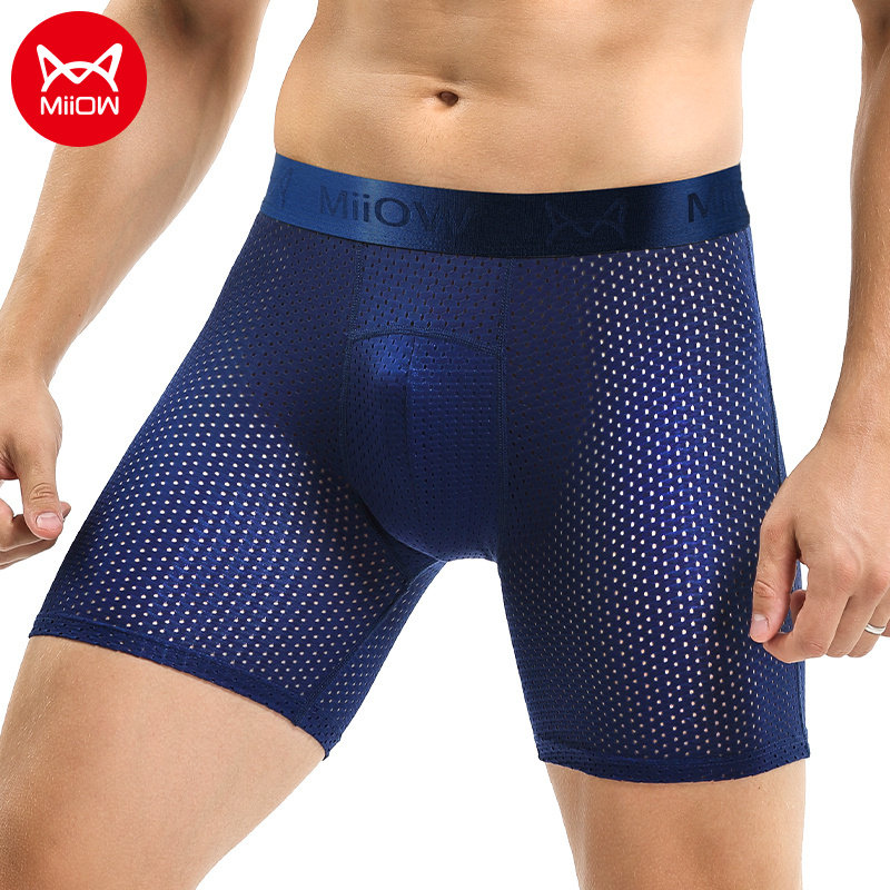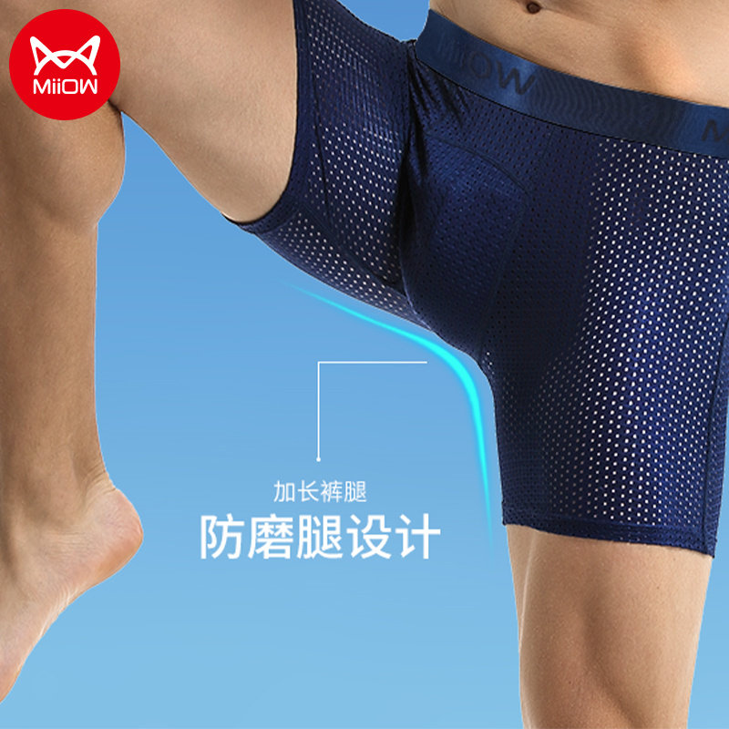 Cat people men's ice silk sports underwear boxer running anti-wear legs quick-drying long plus size fat guy boxer shorts