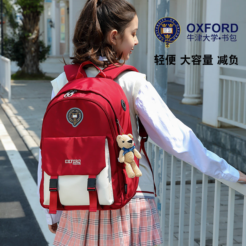 Oxford University schoolbag junior high school girls large-capacity nursing crest to reduce the burden of primary school students' schoolbags for girls in grades 3 to 6 light