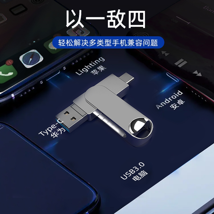 Four-in-one mobile phone U disk can be customized LOGO suitable for Apple mobile phone TYPE-C Android MICRO interface