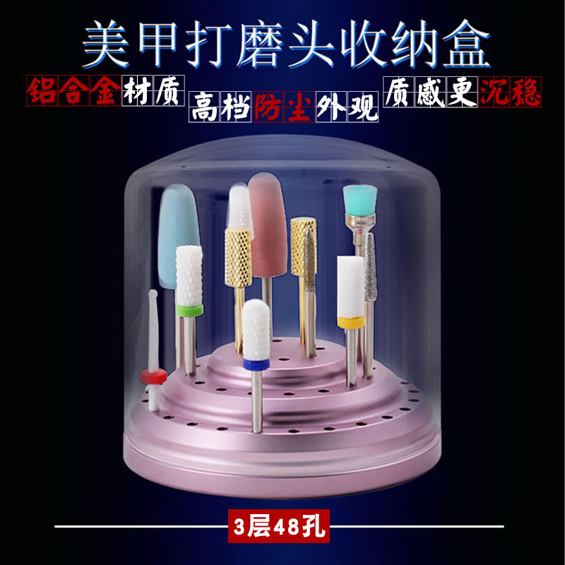 Nail grinding head storage box nail shop special aluminum alloy with cover dustproof round jack multi-layer display stand
