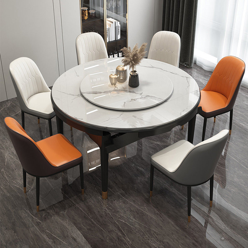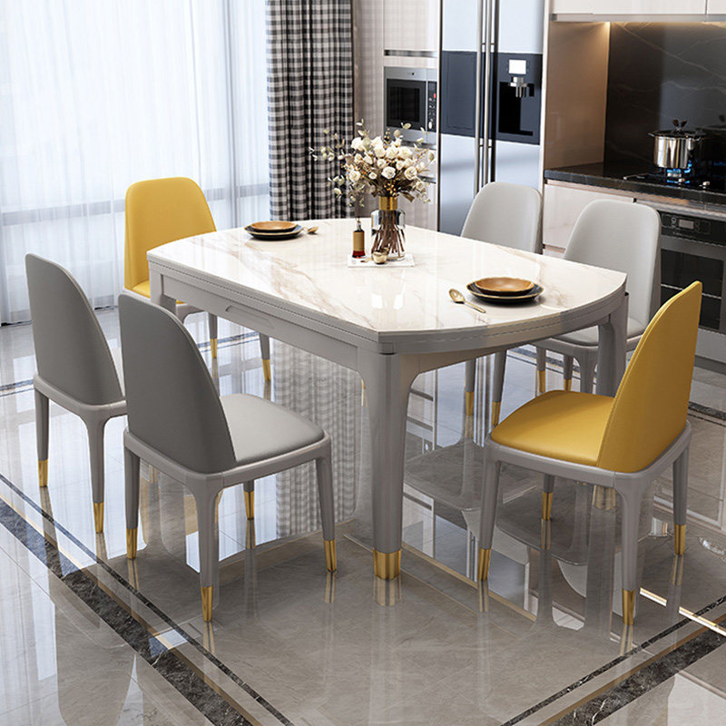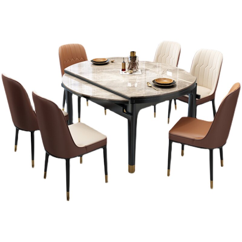 Enoch rock board dining table and chair combination small apartment light luxury modern telescopic square round dual-purpose folding turntable solid wood dining table