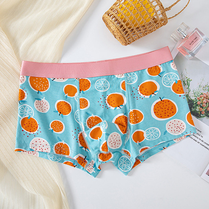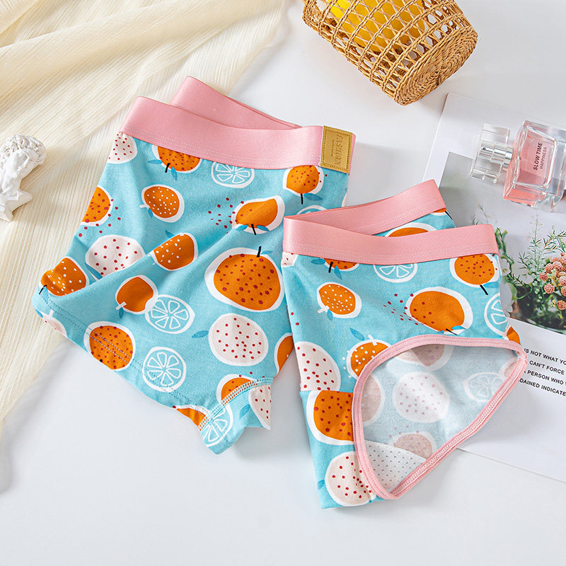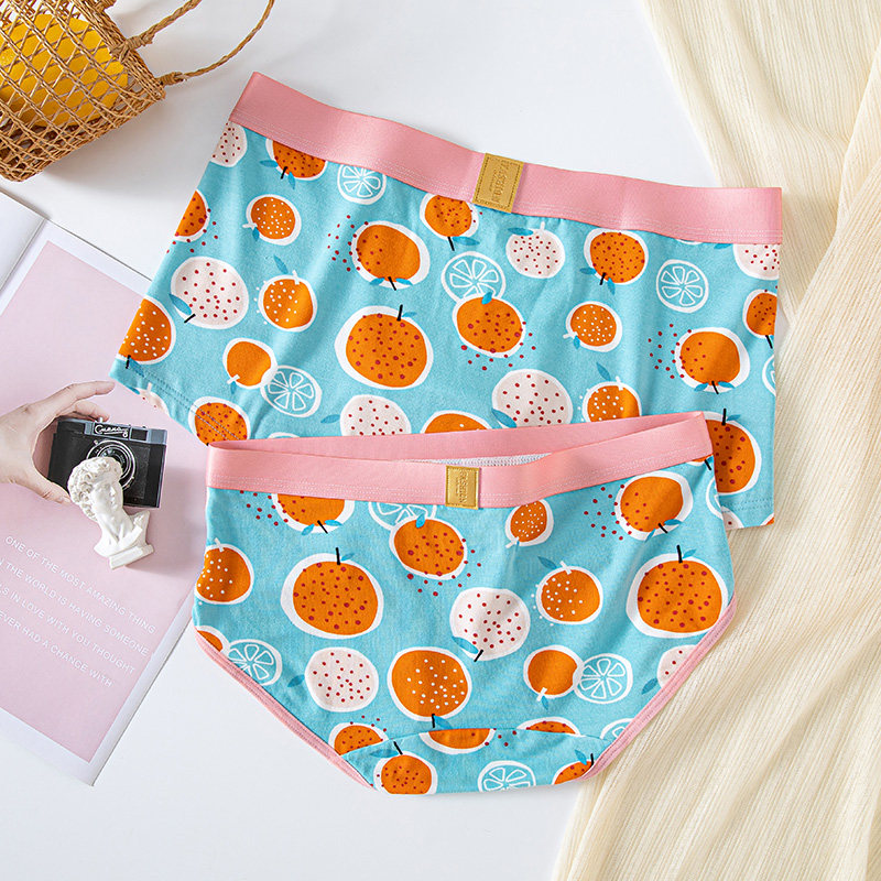 Cute couple's underwear pure cotton crotch cartoon printing men's boxer girls' briefs a pair of sports mid-waist suit