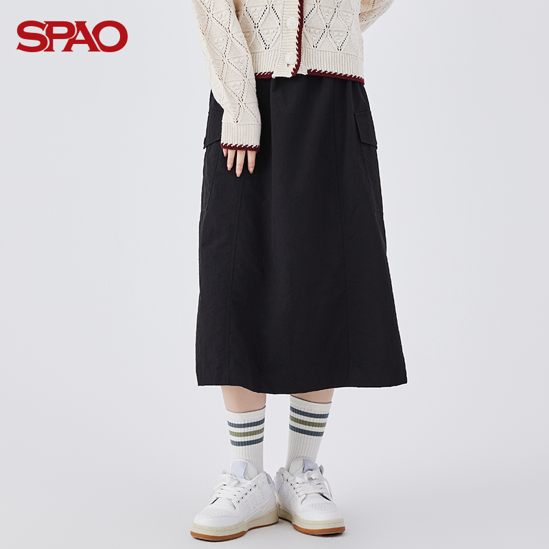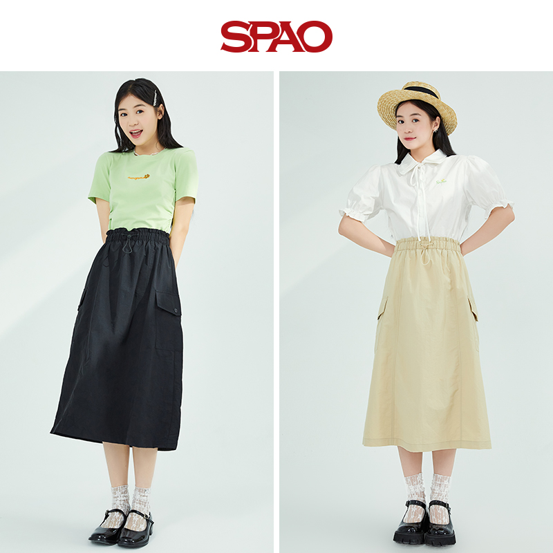 SPAO Ladies Skirt 2022 Early Autumn New Casual Workwear Elastic Waist Midi Skirt SPWHC37S21