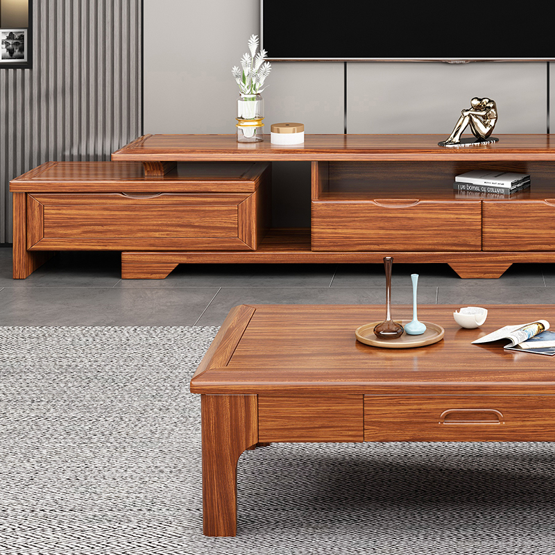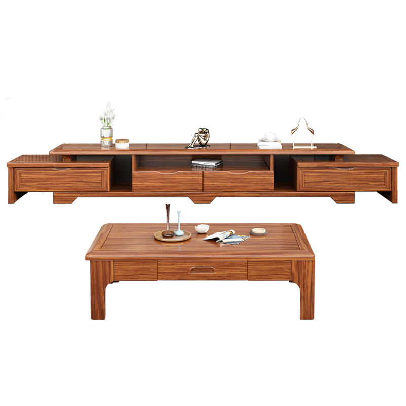 Wujinmu coffee table TV cabinet combination modern minimalist all solid wood small apartment living room floor cabinet new Chinese TV cabinet