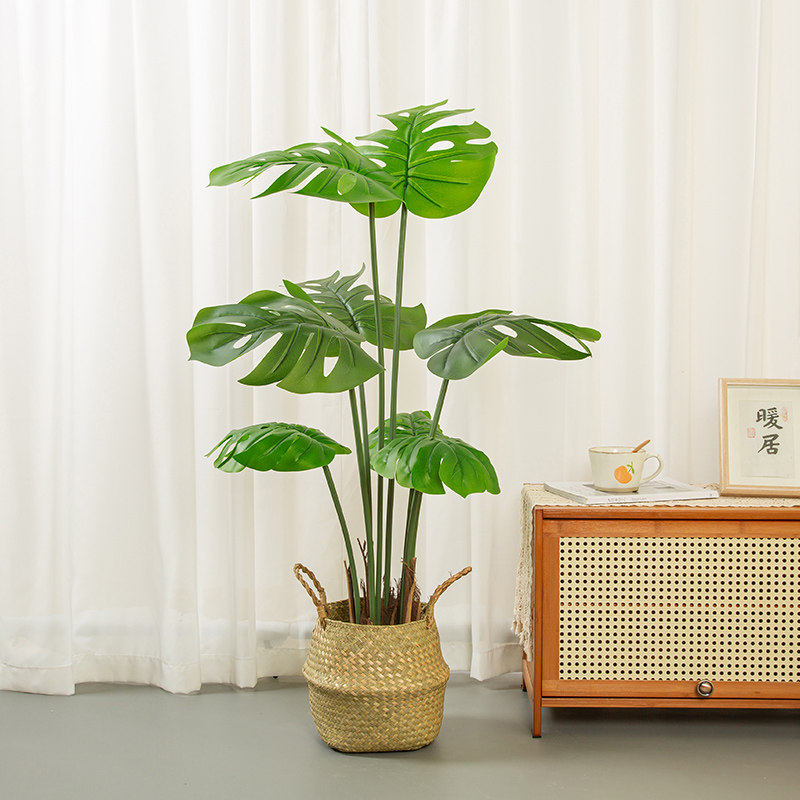 Nordic Light Lavish Emulation Tortoise Back Leaf Bamboo Large Indoor Living Room Floor Home Building View Potted Plant Green Planting Decorative Pendulum-Taobao