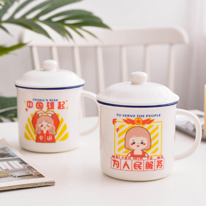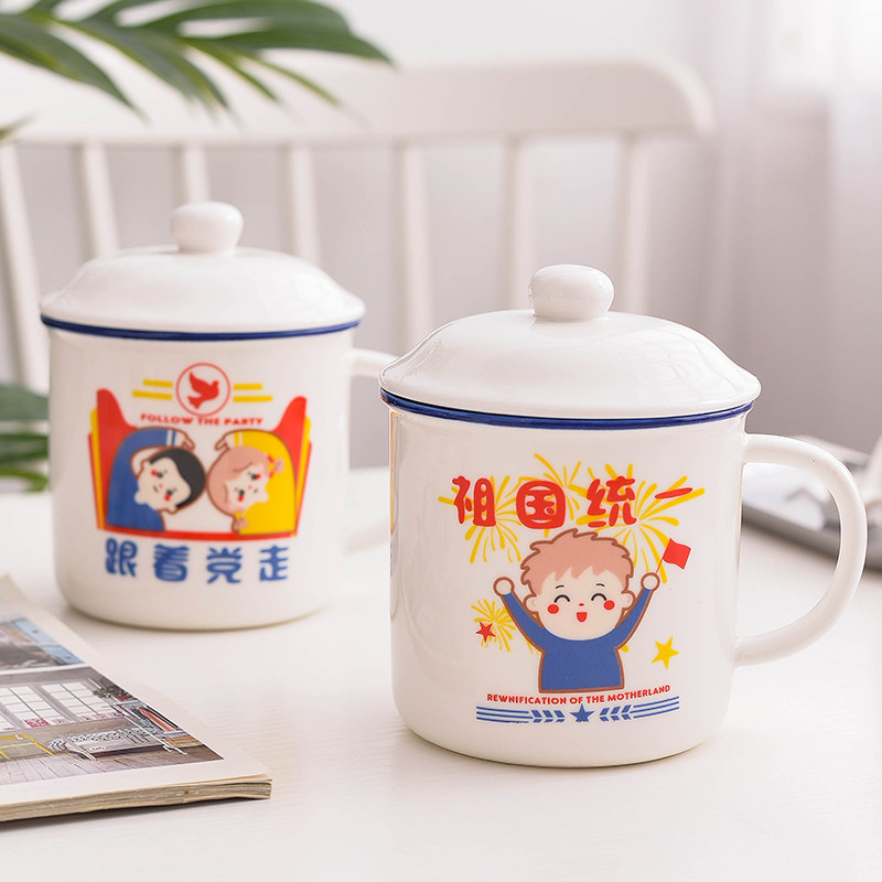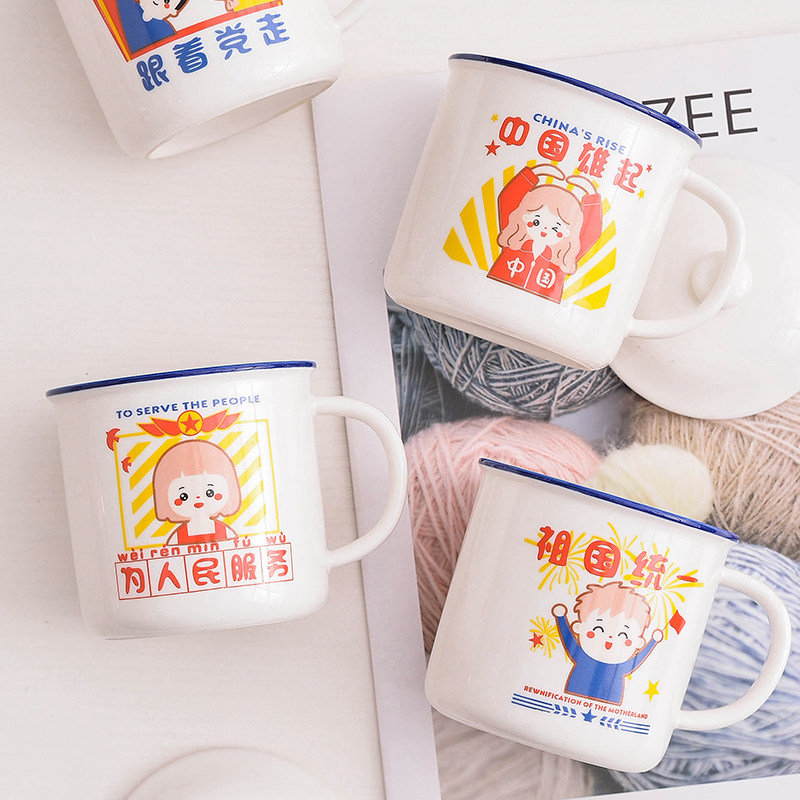 National Day Nostalgic Water Cup Couple Student Ceramic Cup Office Mug Cute Creative Retro Porcelain Cup