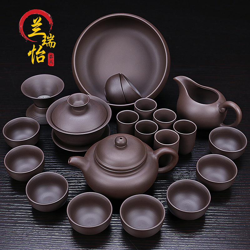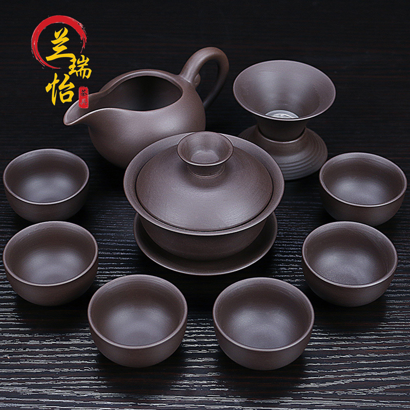LAREEY Purple Sand Kung Fu Tea Set with Light Luxury Household Tea Cup Cover Bowl Portable Tea Tool Accessories