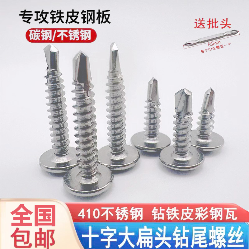 410 stainless steel drill tail nail big flat head round head washer dovetail wire self-tapping self-drilling screw color steel tile screw