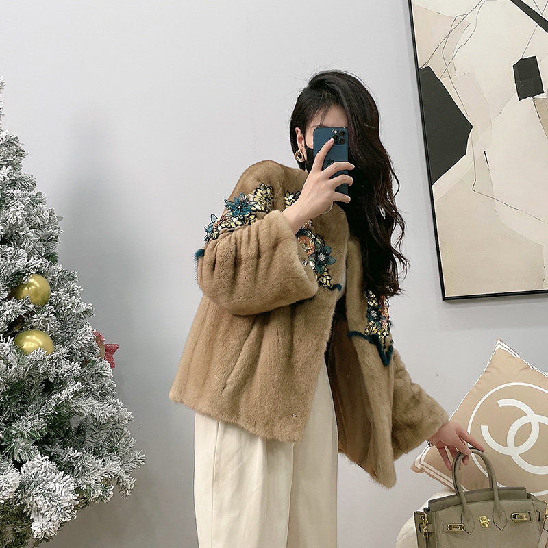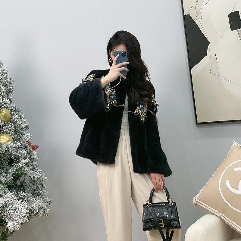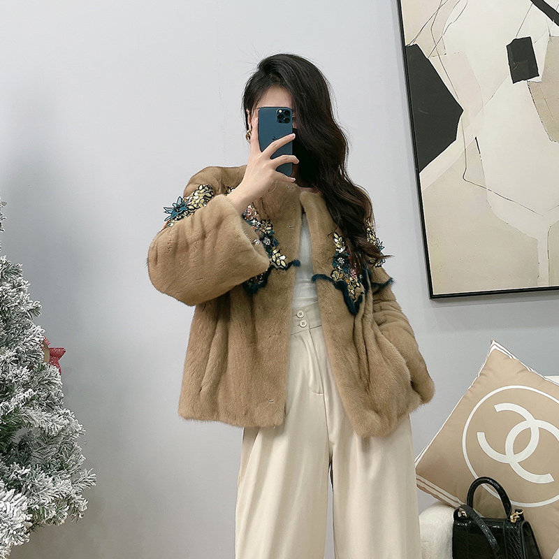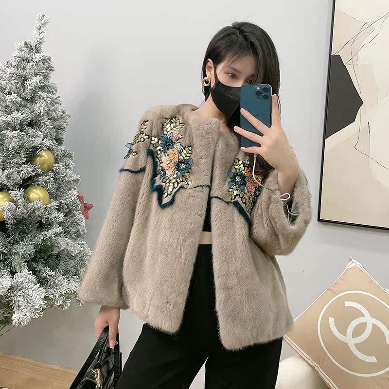 Mrs. Leng's young style sequin stitching Haining whole mink mink fur velvet mink fur coat women's fur coat