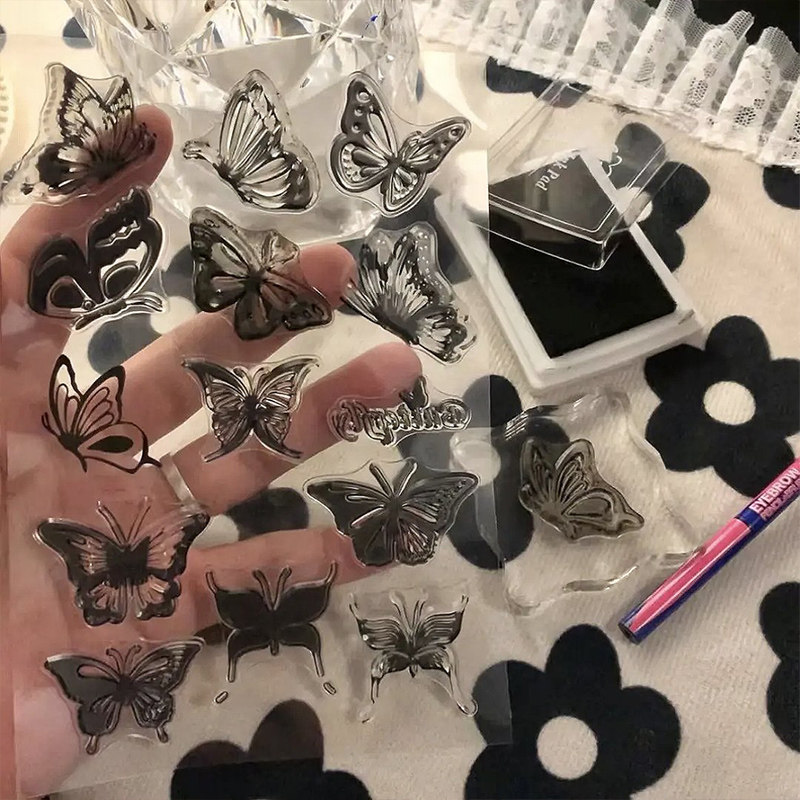 1 set (14 butterfly seal black printed clay transparent seal) 2 sets-bestie (14 butterfly seal black printed clay transparent seal) 3 sets-ultra-valued fit (14 species of butterfly