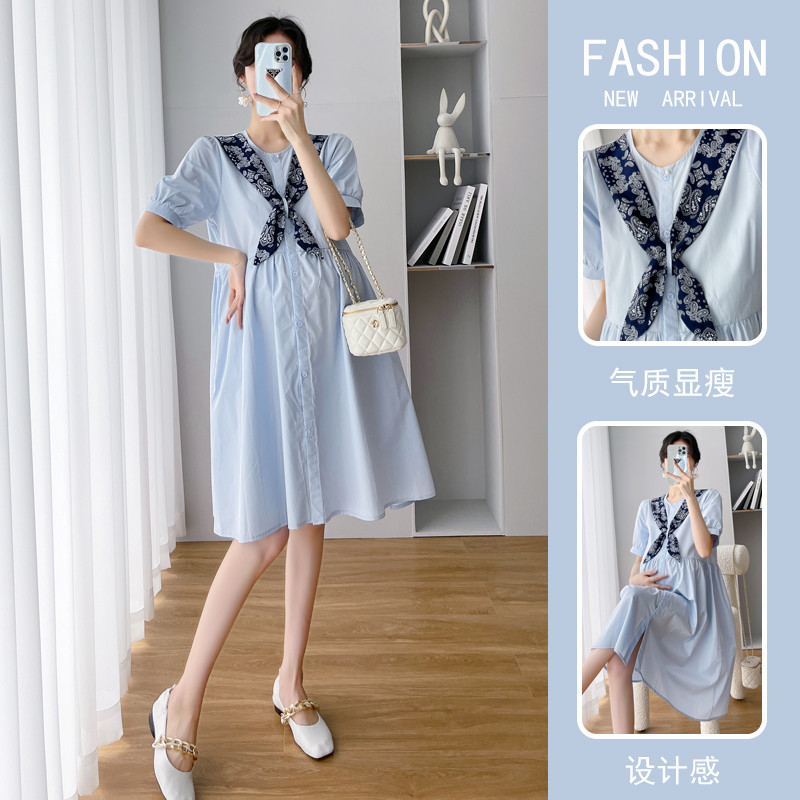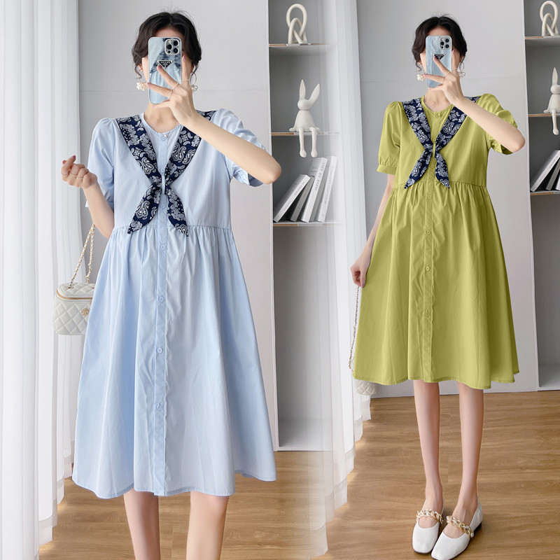Pregnant women dress summer fashion trendy mom loose short-sleeved top shirt chiffon skirt summer can breastfeed summer dress