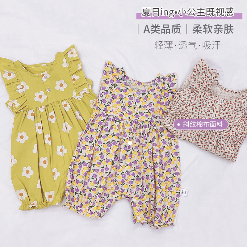 Baby summer clothes, super cute, cute floral Korean version of climbing clothes, ins wind rompers, outerwear, short-sleeved baby jumpsuits