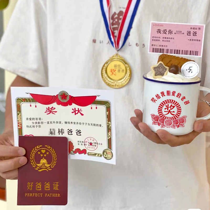Father's Festival Burst Combo Love Dad Enamel Vat 1 Big Number Best Dad Medal 1 Small Number Best Dad Medal 1 Good Dad Card 1 Book I Love Your Dad Ticket 5 Best Dad Award Shape 5 Gold Lord 5