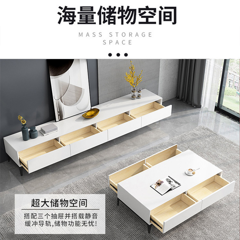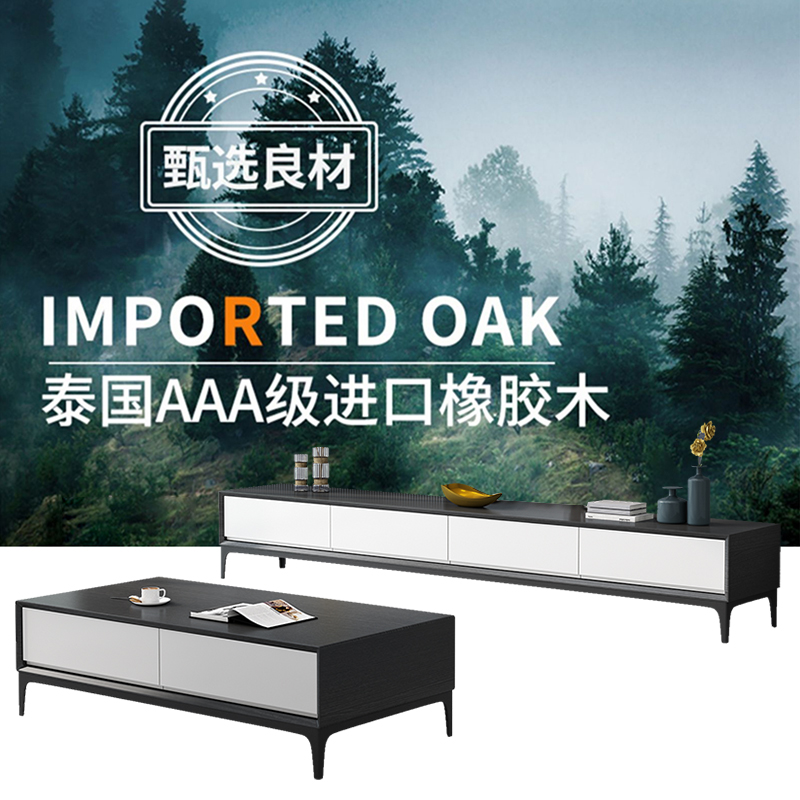 Solid wood TV cabinet simple modern coffee table combination living room light luxury small apartment rubber wood white TV cabinet
