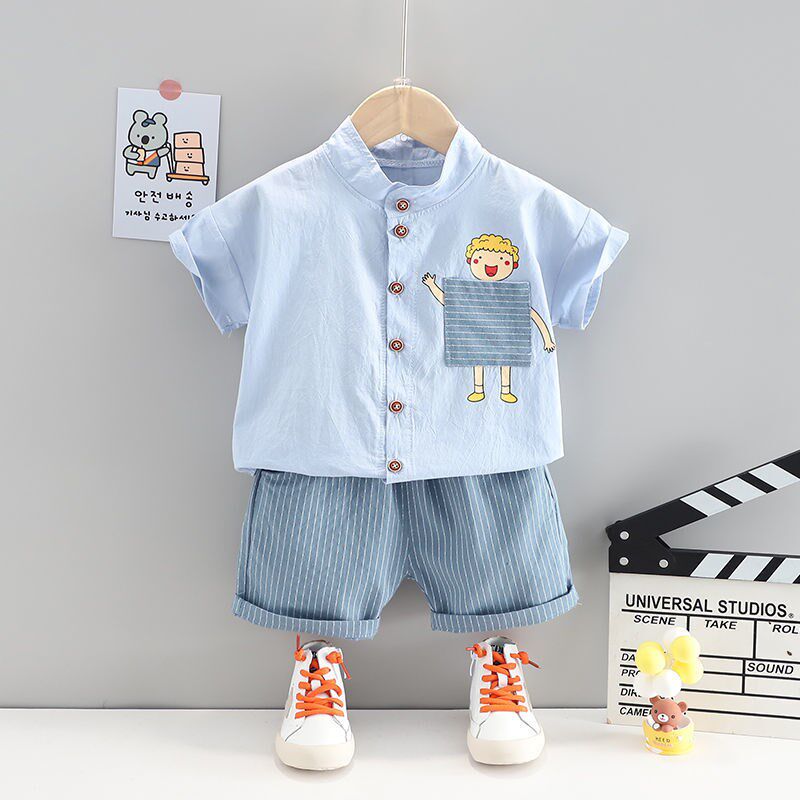 White Blue Cartoon Small Man Shirt Short Sleeve Suit Apricot Cartoon Small Man Shirt Short Sleeve Suit Yellow Cartoon Small Man Shirt Short Sleeve Suit White Dinosaur Short Sleeve Blue Bow Tie Shirt Short Sleeve Suit