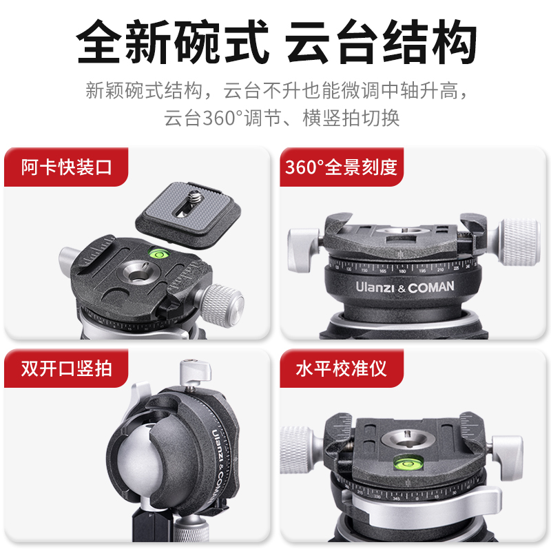 Ulanzi Youbasket ZERO Y zero senses full carbon fiber tripod single counter camera universal professional stable video portable travel tripod bowl-shaped damping tripod head photographic camera tripod-Tao