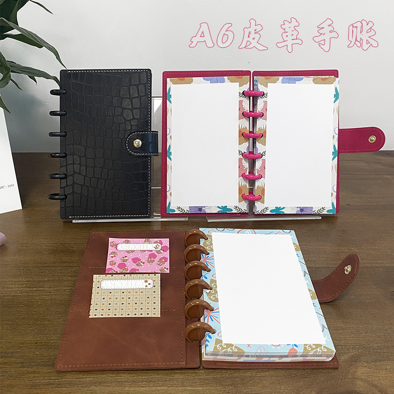 RINGNOTE leather notebook A6 loose-leaf book portable notebook removable mushroom hole hand book