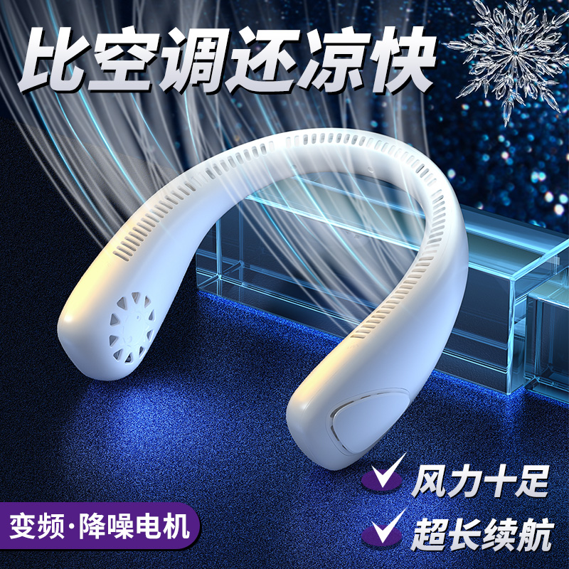 (2024 new style) hanging neck fan portable small lazy hanging neck ear neck leafless refrigeration air conditioner silent charging mini electric fan outdoor kitchen summer cooling artifact