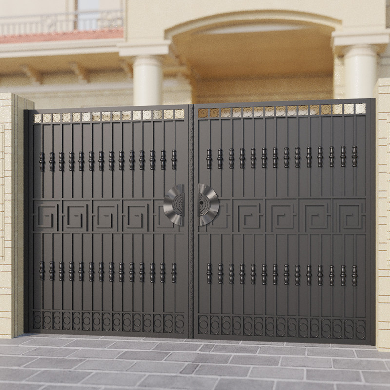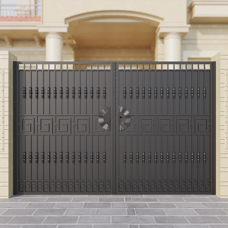 Villa courtyard gate stainless steel outdoor single and double doors self-built house fence wrought iron gate country side door